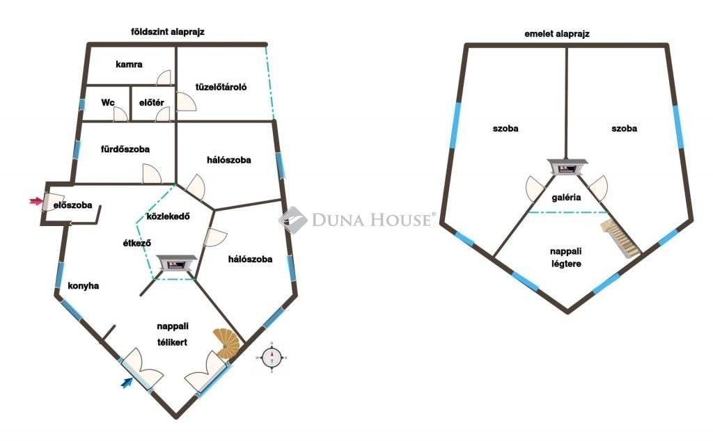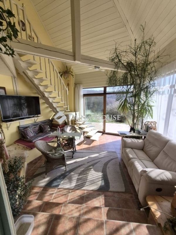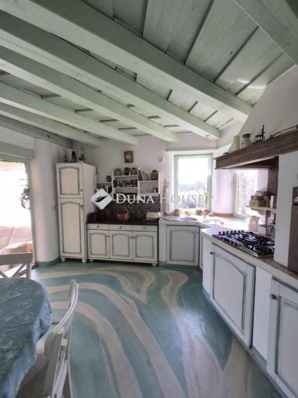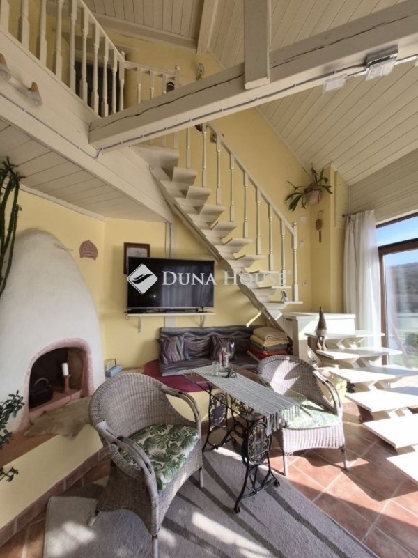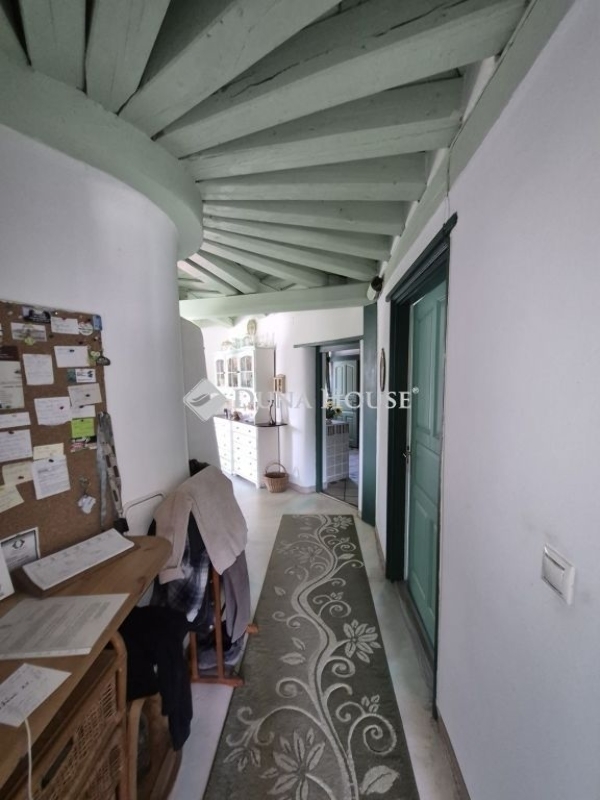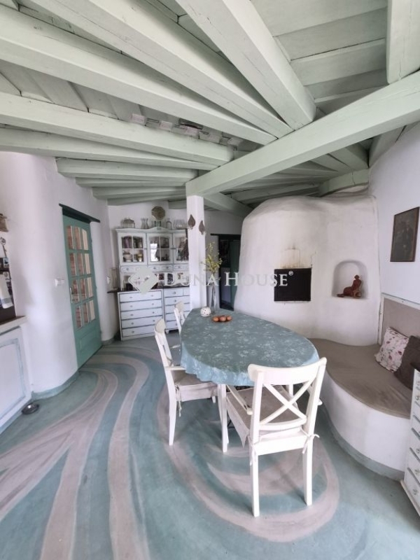 Három nyitott színlakóház:141m²-es belső két szintes, különleges ötszögletű lakóház 4 szobával, konyhával, fürdőszobával, kamrával, télikert-nappalival és terasszal. A ház fűtése fatüzelésű kemencével és légfűtéssel biztosítja a meleget. A télikertből csodálatos kilátás nyílik a környező dombokra és völgyekre.