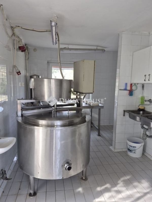 Sajtüzem: 60 m²-es működő sajtkészítő üzem pasztőröző-sajtkészítő káddal, hűtőkamrával, csomagoló helyiséggel. A berendezések az eladás részét képezik. Az épület másik fele jelenleg oktatóterem, így gazdasági és képzési célokra egyaránt alkalmas.