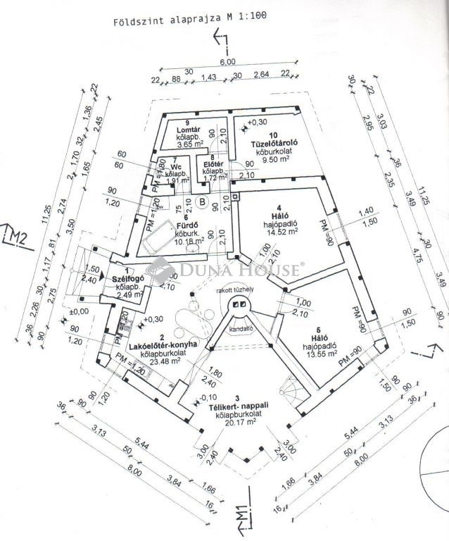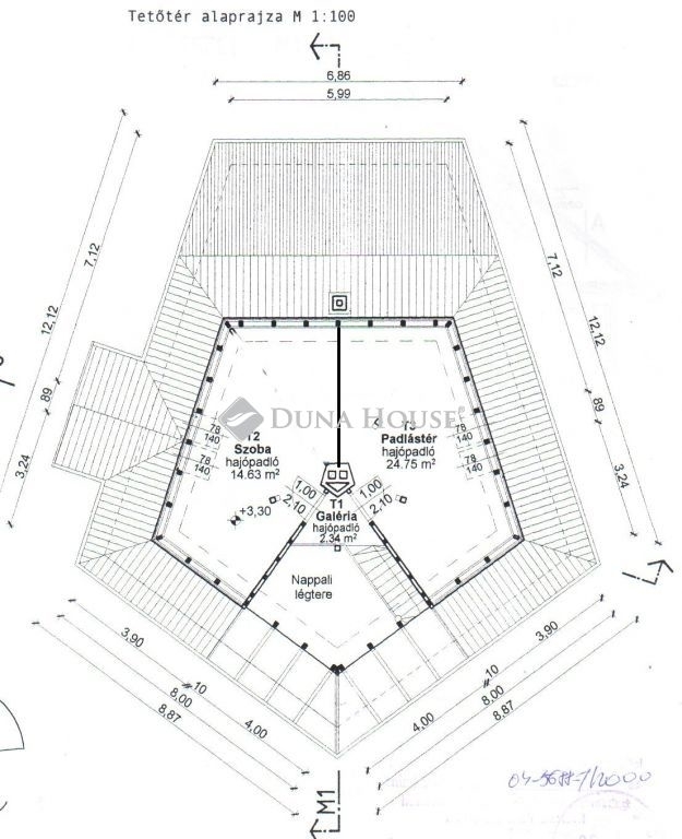 Lakóház: 141 m² (100 m² földszint + 41 m² tetőtér)