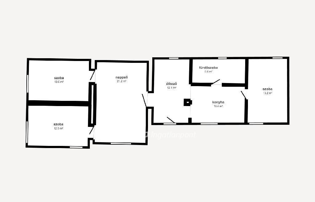 3 különnyíló szoba, előszoba, konyha és fürdőszoba