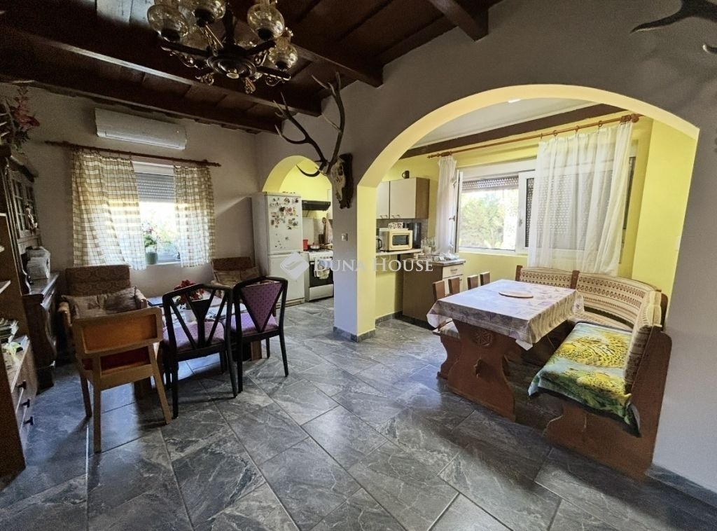 Eladó egy 60 m²-es családi ház, ami kisebb, mint egy átlagos pláza butik, de sokkal praktikusabb.A tégla falak stabilak, a 20 m²-es fedett terasz pedig akkor is használható, amikor az időjárás épp úgy dönt, hogy extrém sporttá teszi a kint tartózkodást.A ház három szobával, amerikai konyhás nappalival és étkezővel olyan okosan lett elrendezve, mintha a tervező Tetrisszel végigdolgozott éjszakák után találta volna ki a beosztást.Fűtés és hűtés? Kandalló és három hűtő-fűtő klíma gondoskodik róla, hogy télen romantikázni lehessen a tűz mellett, nyáron pedig úgy érezd magad, mintha egy jéghideg wellnessben ülnél.És hogy mindez ne verje földhöz a rezsit: H tarifás villany is rendelkezésre áll, így a klímák spórolós üzemmódban is csúcsra járhatnak.A ház teljes felújításon esett át, nem csak lakberendezős értelemben, hanem tényleg: új víz- és villanyvezetékek, szigetelt padlás, megújult gerendás nappali, laminált parkettás szobák, új kerámia nappali burkolat, modernizált fürdőszoba, hőszigetelt műanyag nyílászárók redőnnyel és szúnyoghálóval.A fedett, burkolt terasz néhány éve épült, így a grillpartik akkor is megtarthatók, ha az időjárás épp ellenséges hangulatba kerül.Telek? Több mint 3000 m².Ez már az a kategória, ahol meg lehet találni a saját belső békét, el lehet veszni, vagy lehet saját kis birtokosként mutogatni: az is az enyém meg az ott is igen, még az is ott hátul.A melléképületek száma alapján egy fél skanzen is kijöhetne: pince, füstölő, nyári konyha (akár külön lakrésznek is), és egy hangulatos búbos kemence mert a vidéki romantika így lesz teljes.Megtekintési szándék esetén hívj bizalommal!