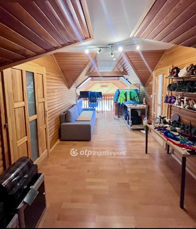 A ház alacsony fenntartási költségű: napelemrendszer, pellet kazán, 2 db hűtő-fűtő klíma és villanybojler gondoskodik az energiatakarékos működésről. A földszinten nappali?étkező, konyha spejzzel, 2 külön nyíló hálószoba saját gardróbbal, fürdőszoba, külön WC és háztartási helyiség található. A tetőtérben további 2 szoba, előtér, tároló és egy második fürdőszoba került kialakításra.