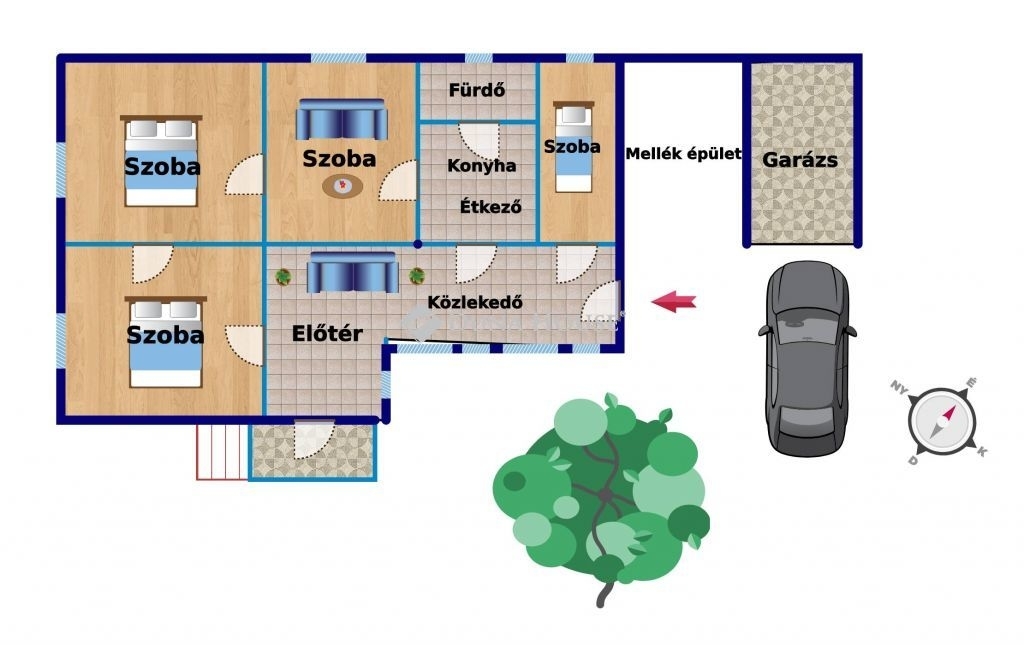 A négyszobás ház rendkívül világos, kellemes nagy terekkel rendelkezik. Mellette szintén felújítandó garázs és gazdasági épület. Az 1380 nm-es hatalmas kert zöldség-gyümölcs termesztésre kiválóan alkalmas.