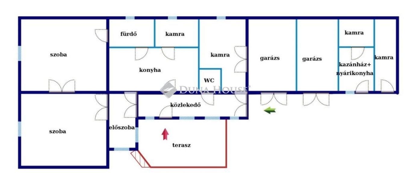- 2 szoba, előszoba, konyha, fürdő, kamra, WC, közlekedő, terasz