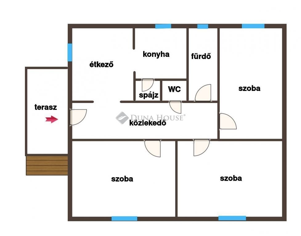 - 3 szoba, konyha, étkező, fürdő, WC