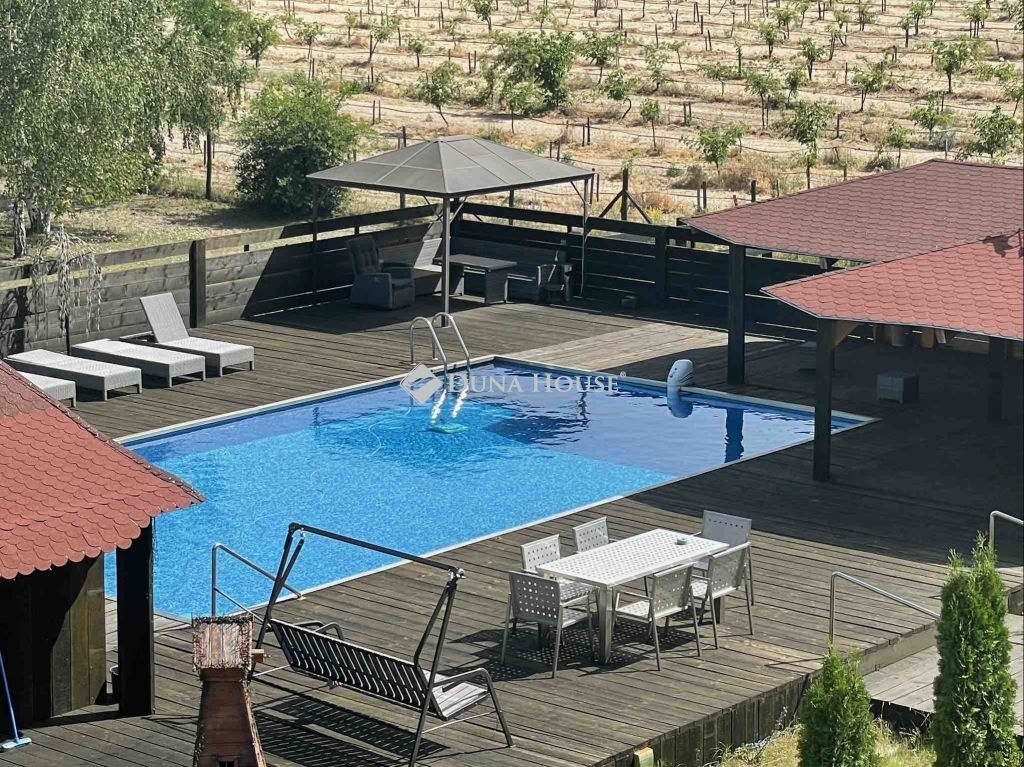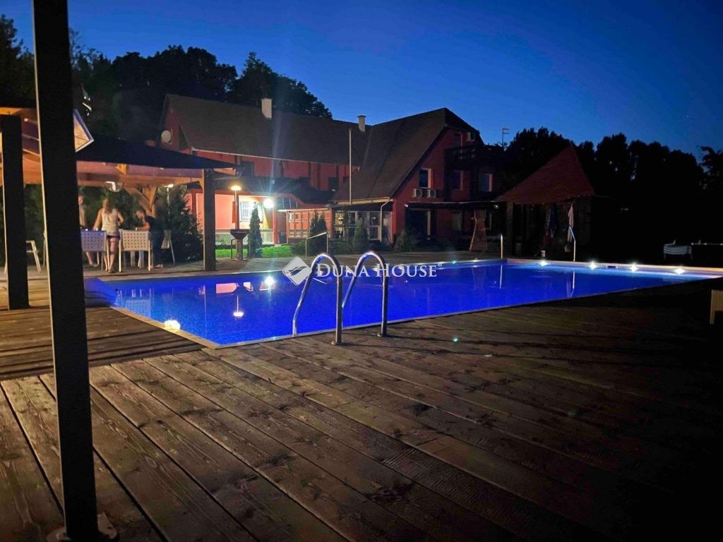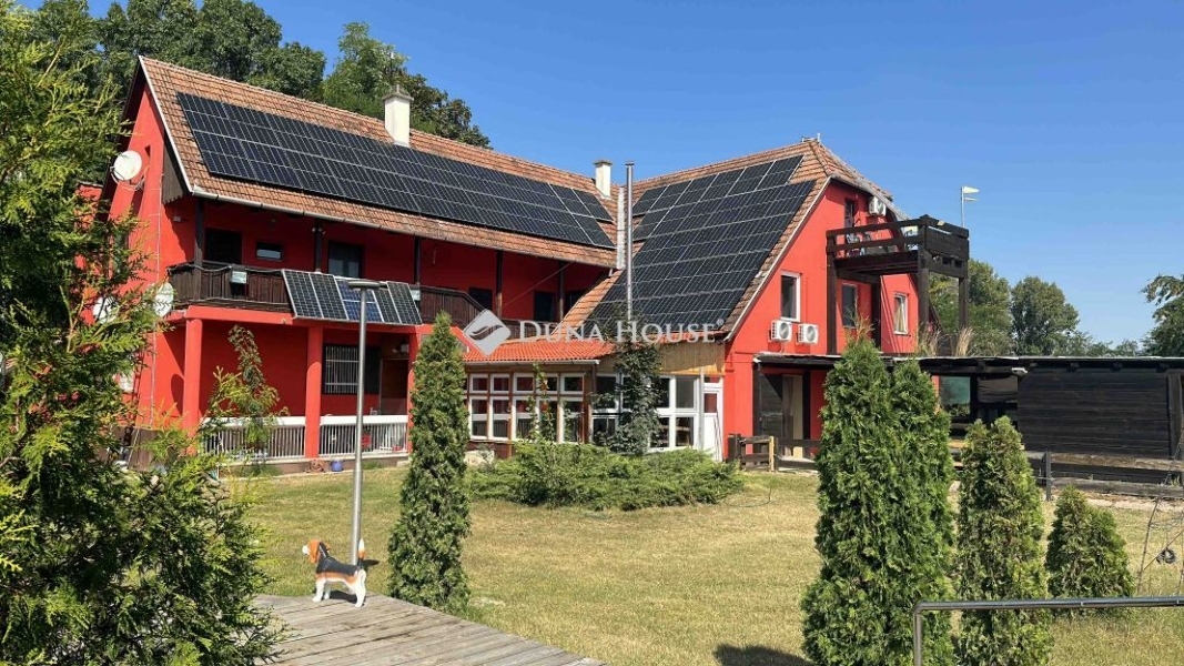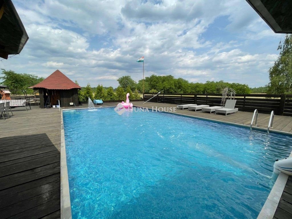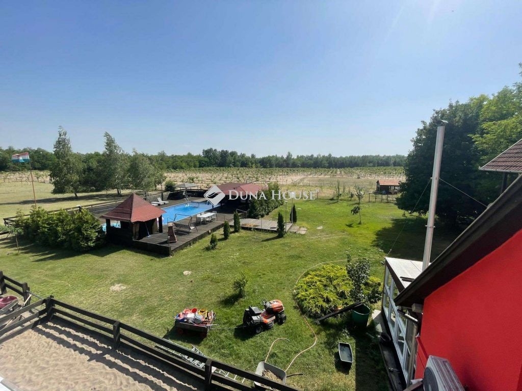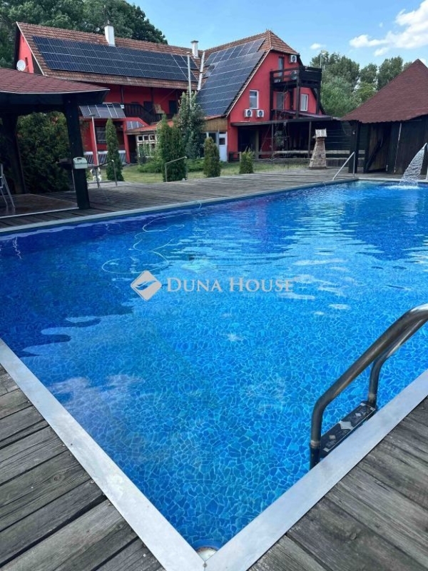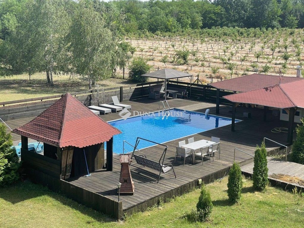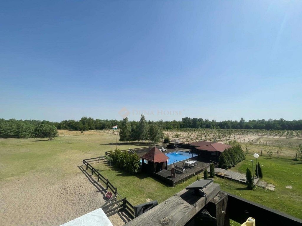 Jakabszállás külterületén 6,5 hektáros BIRTOK ELADÓ!Megvételre kínálom, ezt a minden igényt kielégítő, luxus felszereltségű ingatlant. A nyilvántartási adatok szerint kivett panzió, sportpálya és legelő a besorolása. Az egész terület 6,5 ha, melyből 5,7 ha kivett.Kft. tulajdonában van, a Kft-t megvásárolva juthatnak hozzá, így külföldi állampolgárok is megvásárolhatják. A birtok közzéppontjában található főépület 650 nm-es, összesen 8 apartmannból áll, melyek előszoba, szoba, fürdő és WC helyiségekből állnak. Az összes szoba légkondicionálóval felszerelt.A földszinten, mely közel 250 nm, tágas nappali, télikert beépített grillezővel, elektromos padlófűtéssel, és exkluzív kivetelezésű ALNO konyha áll rendelkezésre. A konyha gránit munkalappal, beépített gépekkel, igazi élményt nyújt a főzéshez. Az egész épület magas műszaki tartalommal rendelkezik, mind a gépészet, mind a burkolatok, szaniterek vonatkozásában.Az emeleten 6 apartman, nagy nappali és balkon található. Az apartmanok itt is szoba, előszoba, fürdő és WC-vel felszereltek. A tetőtérben egy különálló lakrész került elhelyezésre. Csodás kilátással az egész birtokra.Műszaki jellemzők:- falazat porotherm 38-as tégla- vízellátás: 2 db mikroszűrővel felszerelt 40-60 méteres mély kút (5 db fúrt kút, mely össze van kötve, a folyamatos vízellátás érdekében) Melegvíz lehetséges, gázzal, fával, elektromos árammal- fűtés: központifűtés, 3500 literes külső gáztartállyal, fatüzelés új 40 KW puffertálolóval, napelemmel működő elektromos radiátor, nappaliban cserépkályha- áram a vezetéken keresztül 3 x 32 amper biztosítékkal- napelemes rendszer 31 500 kwh éves hozammal- vészáram-generátor 15 KW, 380 V, automatikus bekapcsolás, 4 hengeres dízel egységgel felszerelve- szennyvíz: extra 2 kamrás szennyvíztisztító Biztonság Kamerás megfigyelő rendszer Riasztórendszer A földszint teljesen felszerelt ablakrácsokkal. Mozgásérzékelők világítással az egész ingatlanban Mozgásérzékelők világítással a ház körülInternet és hálózat 2 LTE / G4 külső antenna routerrel/WiFi-vel Hálózati elosztás a házbanA hatalmas birtok több, mint a fele bekerített.Külön exkluzív medencetér, pihenővel található. A medence vízellátása 100 méter mély kútból történik. Tisztító berendezéssel, napelemes fútéssel rendelkezik. A medence körülötti rész fával burkolt. Fedett külső, extra minőségű konyhával, zuhanyzórésszel és napozóterasszal kialakított. A medencetér 22 X 16,5 méter. A medence 12 X 6,5 méter területű, mely ellenáramű rendszerrel és világítással rendelkezik.A birtokon található még 4 ló elhelyezésére alkalmas box, szénatároló és szabadtéri lóterület etetőtérrel.A gépészet külön épületben található.Melléképület garázzsal, a tetőtérben kialakított apartmannal, közvetlenül a bejárati kapunál helyezkedik el, a kapu elektromosan távvezérléssel nyitható.Kisállattartásra alkalmas elkerített terület ólakkal, traktrotároló, fedett szín, 4 autó elhelyezésére alkalmas fededtt beálló is megtalálható ezen a fantasztikus helyen.Rendkívül sok lehetőséget rejt magában, engedje szárnyalni fantáziáját és szerezze meg ezt a páratlan ingatlant!Jakabszállás külterülétn az asztaltos úttól kb. 800 méterre található, Kecskeméttől 18 km-re. A külvilág zajától mentes, erdős, környezetben, kiváló levegővel rendelkező birtok.Megtekintési szándékával, vagy kérdés esetén, hívjon bizalommal!