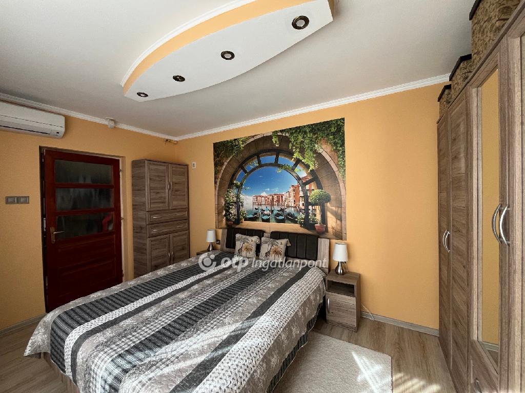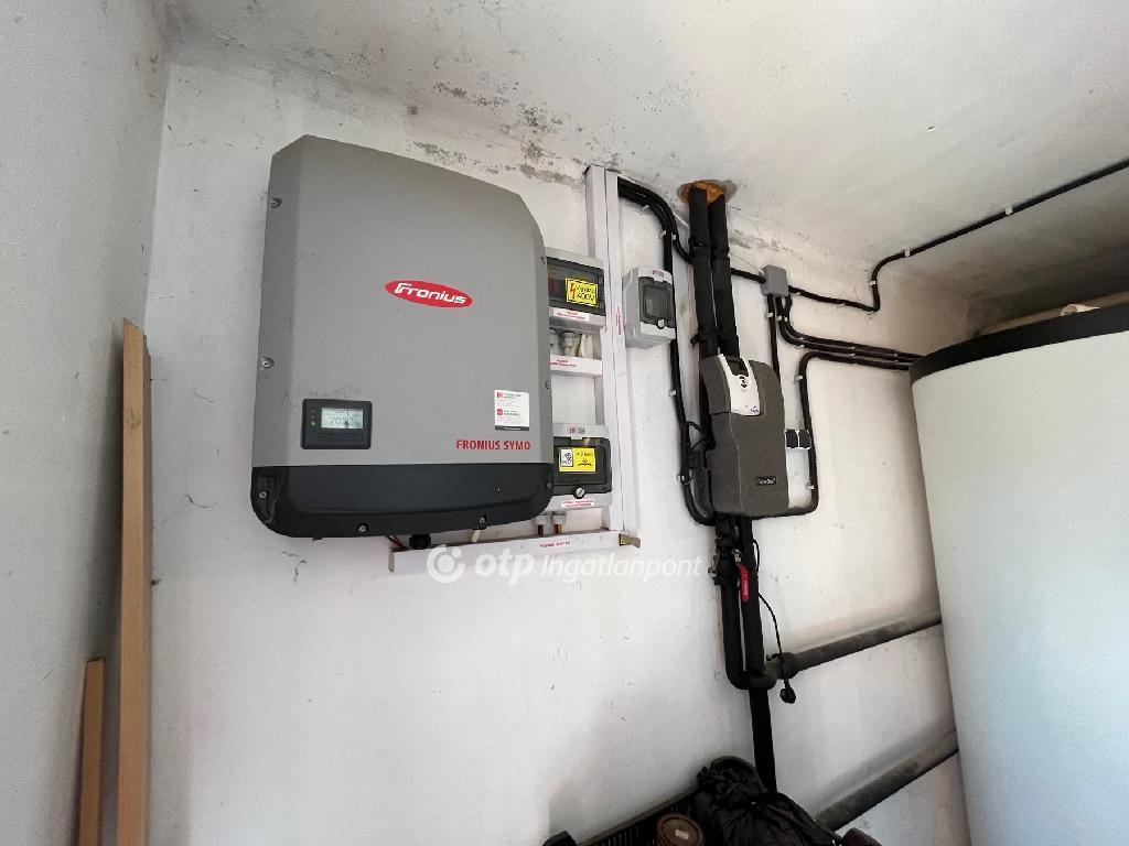A 125 m2-es családi ház falazata vegyes, a tégla falazat 10 cm-es hungarocell szigetelést kapott. A födém szintén szigetelt. Az ingatlanban 3 szoba, közlekedő, konyha, fürdőszoba, WC, kazánház, tároló, közlekedő, valamint dolgozó szoba került kialakításra. A szobák laminált padlóval, a többi helyiség járólappal borított. Az otthon melegéről gáz-cirkó kazán radiátoros hőleadókkal gondoskodik. A központi fűtésnek köszönhetően mindenhol padlófűtés található. A házban 3 db. hűtő-fűtő klíma is felszerelésre került.