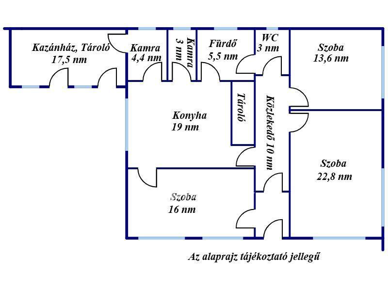 A ház három tágas, világos szobával, nagy konyhával, fürdőszobával, külön WC-vel, kamrával és praktikus tárolókkal várja új tulajdonosát. A nagy ablakokon keresztül egész nap árad be a napfény, amely barátságossá és otthonossá varázsolja a belső tereket. Az épület beton alapra épült, szilikát falazatú, cserép fedésű, szerkezetileg kiváló állapotú, ugyanakkor a leendő tulajdonos igényei szerint felújítandó, így igazán egyedi otthonná alakítható.