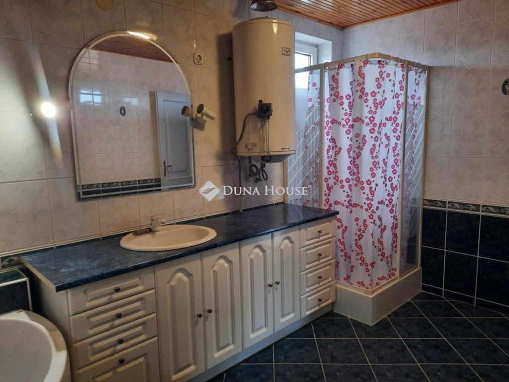 Az emeleti fürdő rendkívül tágas, mosógép és szárítógép is kényelmesen elfér.