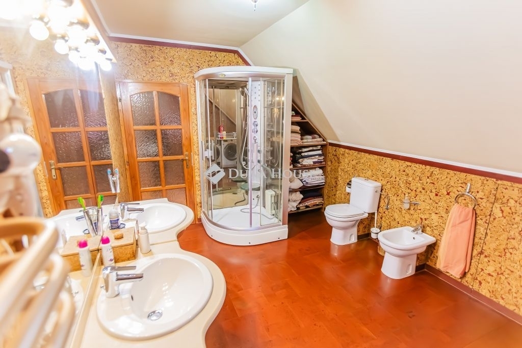 Jászberény Kertvárosában eladó sorba került egy saroktelken elhelyezkedő, 2 generációs ingatlan (főépület 160 m2 - alsóépület - 112 m2), ami vállalkozás célra is hasznosítható!Az alsóépületre engedélyezett terv is készült, ami lakóház átalakítására szolgál.A saroktelken való elhelyezkedés lehetővé teszi, hogy a 2 ingatlan akár különválasztó, amelyhez külön utcafronti bejárás tartozhat.Lakóépület: - 1995-ben épült tetőteres, 3 szobás családi ház akár 4 szobássá is visszaalakítható + nappalis - 2 fürdőszobás kialakítással - Külső homlokzat 6 cm hungarocell szigeteléssel ellátott - a lábazat 5 cm szigetelést kapott - Szo-fa kültéri fa 2 rétegű szigetelt nyílászárók alumínium redőnnyel kiegészítve - Fűtés Westen kombi gázkazán (fűtést és melegvizet is ad), a helyiségeket pedig szabályozható radiátorok fűtik, az 1500 literes puffertartály-ból megy a melegvíz, Továbbá VIADRUS vegyes tüzelésű kazán is lett beépítve alternatív fűtésnek (fűtésrendszer korszerűsítés 2017-ben történt meg) - Földszinten és az emeleten egyaránt egy-egy inverteres klíma lett felszerelve a nagyobb komfortérzet és a praktikusság végett - Villamosáram hálózat 3X25A, TELJESEN kielégíti a ház illetve a lakók igényeit. A konyha és étkező rész tágas és világos, de a tulajdonosok egy teljesen üvegezett télikerttel bővítették a teret, növelve az étkezőt, de el is választható igény szerint.A konyhában egy hangulatos és jól átgondolt, okosan rendszerezhető, egyedileg készített és gépesített konyhabútor került beépítésre. Bőséges konyhapult van, ahol gyakorlott háziasszonyoknak is megfelelő tér áll rendelkezésre.A földszinti helyiségek többsége vynil padlóval, míg a szoba és nappali laminált padlóval burkoltak. A fürdőben parafával burkolt felület lett kialakítva. A LENTI fürdőszobában kádas hidromasszázs zuhanykabin van, a fenti fürdőben pedig hidromasszázs gőzkabin lett beépítve.A fürdő és mosdó külön helyiségben lett kialakítva a földszinten, míg az emeleten egy térben lett kialakítva.Az emeletre vezető lépcső tölgyfalépcső, egyedi hangulatot és kényelmes közlekedést nyújt az ott lakók számára.Az emeleten eredetileg 3 különálló hálószoba lett kialakítva terv szerint, de jelenleg át lett alakítva nagyobb méretű 2 szobás verzióra a nagyobb élettér miatt. Az utcai szobához egy nagy erkély is tartozik.Alsó épület:A szilárd falazatú épület alapterülete 112 m2, rendeltetése üzlethelyiség és garázs. - a dupla garázs mérete 32,4 m2, elektromos távirányítású kapuval rendelkezik, teteje szigetelt, - mellette egy üzlethelyiségnek kialakított helyiség található radiátor fűtéssel, ipari pvc padlóval, - egy közel 40 m2 garzon vagy irodaként is funkcionálható akár, rendelkezik zuhanyzós fürdő+wc, kis nappali, konyhafal és az ehhez szükséges közmű felállások, utca frontról és udvar felől is megközelíthető. - az épület alatt egy igényes kis 15 m2 pince is lett építve: zöldségei mellett itt bort, pálinkát is tárolhat illetve egy kis baráti buli is kivitelezhető. - a kültéri nyílászárók itt is fa szerkezetűek és az ablakok 2 rétegű szigetelt fa ablakok - Villamosáram hálózat: 3X25A Rengeteg lehetőség van ebben az épületben: - akár gyermekei otthona is lehet leválasztva, építési terv szerint 3 szobás háznak alakítható - Jelenlegi garzon kiadható lakó illetve vállalkozó részére is - nagyobb üzlethelyiség kifejezetten vállalkozásnak ajánlott, szinte bármilyen lehetőség adott. - DUPLA GARÁZS lehet raktár is.Az udvar térkövezett a 2 épület között részig, illetve egy fedett kocsibeálló is épült vagy egy kiülős kerti terasznak is használható! A fő épület előtti rész térkövezett, míg az üzlet előtti parkoló aszfaltozott.A térburkolattal ellátott kert egy része sima füvesített illetve műfűvel burkolt.Hidroforos fúrott kútról lehet locsolni, a gépészet a pincében lett elhelyezve.Az ott lakók biztonságáról riasztórendszer gondoskodik, illetve kamera is szerelhető fel.Ez egy komplex ingatlan nagycsaládosoknak és vállalkozó szelleműeknek.Járjuk körbe együtt az ingatlant és lássa meg benne a lehetőséget Ön is!Szeretné megtekinteni az ingatlant?Kérem telefonáljon és megmutatom Önnek!Irodánkban független és teljesen ingyenes hiteltanácsadással állunk ügyfeleink szolgálatára, amelynek keretében CSOK, Babaváró támogatás és egyéb, kedvező kondícióval rendelkező hitelkonstrukciókkal számolhatnak ügyfeleink!