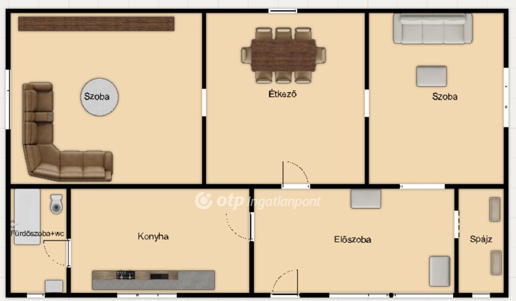 -a belső helyiségben : világos előszoba , 2 szoba , konyha , étkező , spájz , fürdőszoba+wc helyezkedik el.