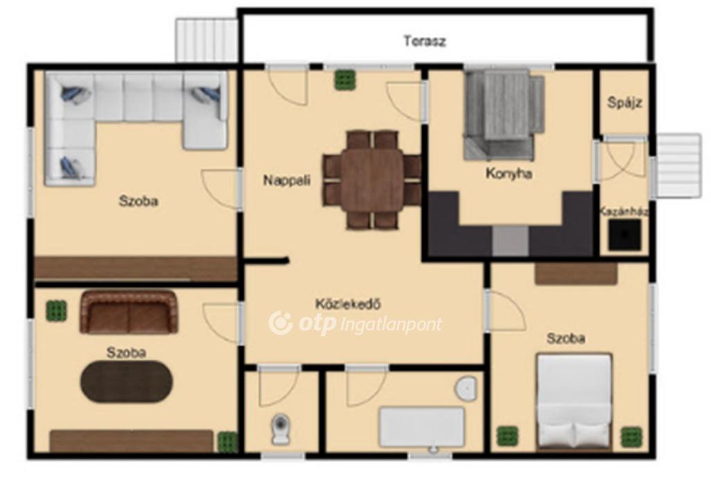 -kedvező fekvéséből eredően a világos beltérrel találkozunk amelyben : 3 szoba , konyha , nappali , fürdőszoba külön wc , spájz , kazánház , 15m2 terasz került kialakításra.