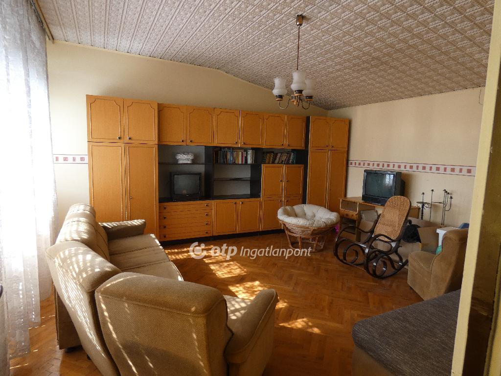 A tetőtéri lakórész külön külső feljárón keresztül érhető el, itt további két szoba, konyha, kamra, fürdőszoba, külön WC és egy előtér található. Az előtérből egy nagy méretű, panorámás terasz nyílik. A felső szint felújítást igényel.
