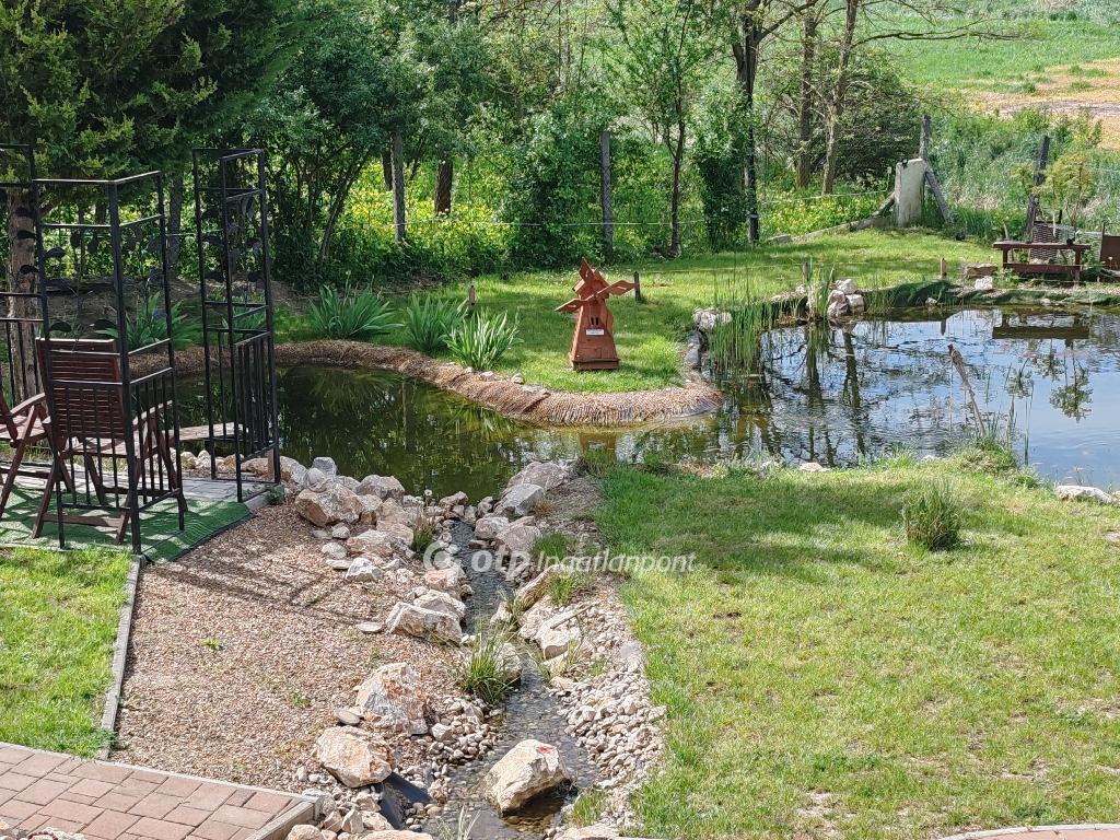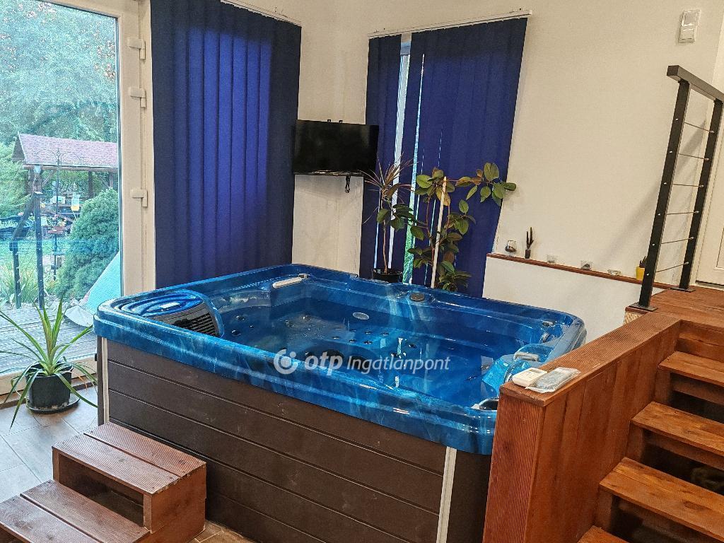 A telken külön wellness épület található jakuzzival, infraszaunával, esőztetős zuhanyzóval és pihenőtérrel, közvetlen napozóterasszal. A kertben kerti tó, patak, kiülő és sütögető kapott helyet, fúrt kúttal kiegészítve.