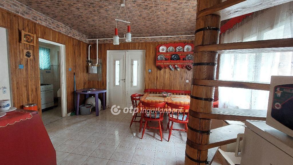 Az 1984-ben épült nagyobbik épület szilikátblokk falazatú, 40 nm lakóterű. Földszinti részén szoba-konyha, fürdőszoba és előszoba található, a bejárat előtt 12 nm-es fedett terasszal. Tetőtéri szoba és ház alatti pince tartozik hozzá. A ház kályhafűtésű, melegvíz-ellátás villanybojlerről. Vízellátás saját fúrt kútból, hidroforos rendszerrel. Villany bevezetve, hagyományos- és parabolaantenna felszerelve. A ház mellett zárható, Lindab-lemezes szerszámtároló. A ház előtt árnyékot adó fás rész.