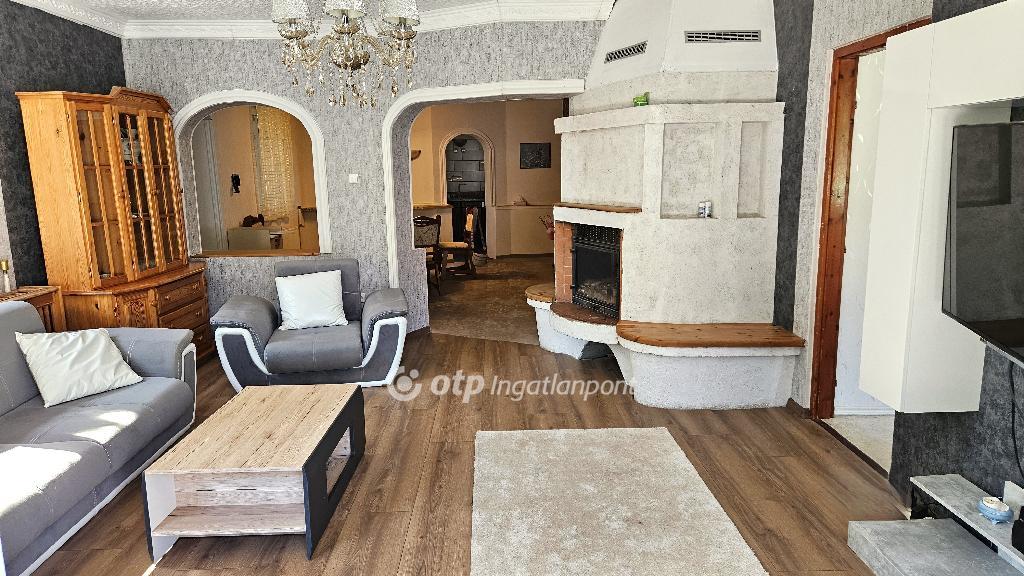 Bács-Kiskun vármegye KECSKEMÉT-Hetényegyháza Miklóstelepi részén eladásra kínálunk egy tégla építésű, hőszigetelt, 2004-es évben épült, 262nm-es hasznos alapterületű RUSZTIKUS kialakítású családi házat 9386 nm-es LIGETES ERDŐS környezetben. A tetőtér beépítéses családi ház földszinti része boltíves kialakítású tornácról közelíthető meg, melyben 1 szoba + 3 félszoba, konyha, előszoba, közlekedő, fürdő, tároló helyiség kapott helyet, míg a tetőtérben egy hobbiszoba, egy lakószoba és egy gardrób helyiség került kialakításra. A főépülethez szorosan kapcsolódik egy 38nm-es két autó beállására alkalmas, szerelőaknás garázs mely egy TÉLIKERT-MADÁRHÁZ kialakítással kapcsolódik a lakóingatlanhoz. A családi ház másik egysége egy tároló kialakítás mely alatt borospincét alakítottak ki. A 3 egységből áll ingatlan, Kecskemét mg-hobbikertes zónájában, az aszfaltúttól 400 m-re található. A közel 1 ha-s, egészében kivett, igényesen kialakított fásított-parkosított és tégla sétányokkal kialakított úton közelíthető meg az ingatlan. Az ingatlan közműves, csatorna hálózata nincs kialakítva ezért zárt szennyvíztároló került kialakításra. Az otthon melegéről gáz cirkó fűtés gondoskodik radiátoros hőleadással, a konyha és a nappali közötti részben egy tégla építésű fatüzelésű kandalló került kialakításra. A ház nem csak külsejében rusztikus kialakítású hanem a lakótér FA mennyezeti része, gerendázata teszi az egész ingatlant EGYEDIVÉ.