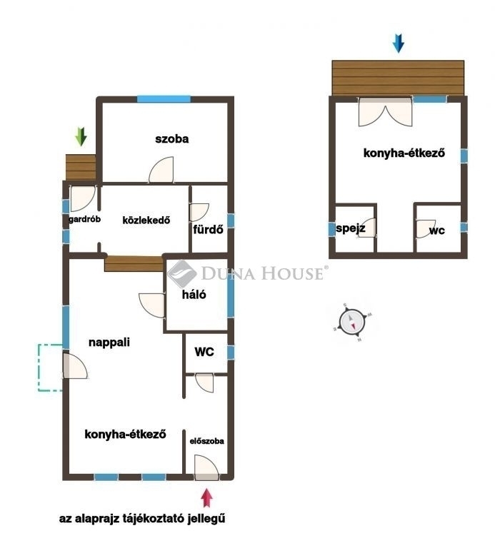 A ház 2 bejárattal rendelkezik, 2 konyha, 2 szoba, 1 fürdőszoba és 2 WC lett kialakítva.