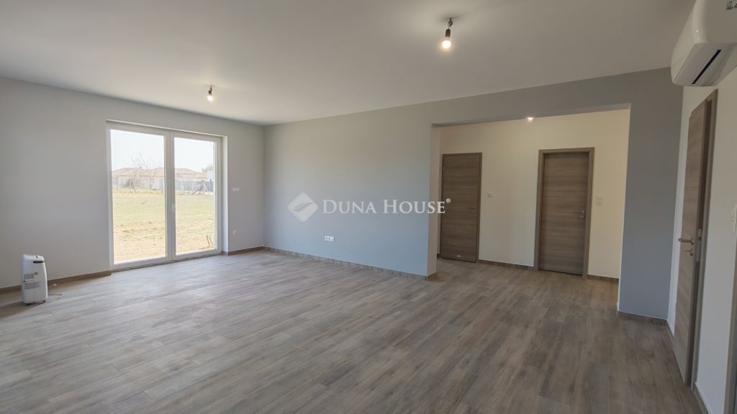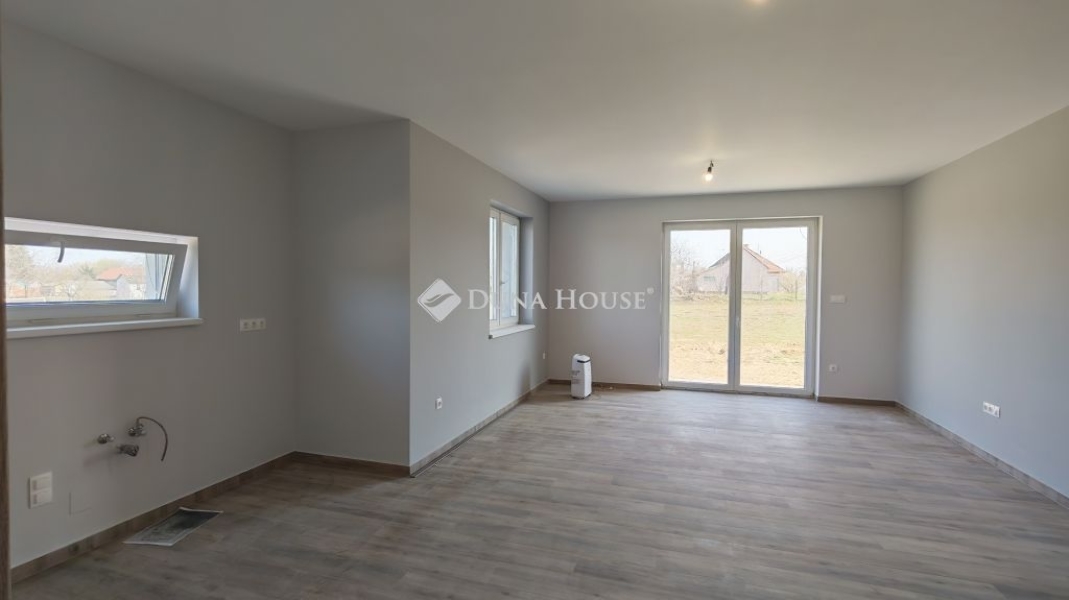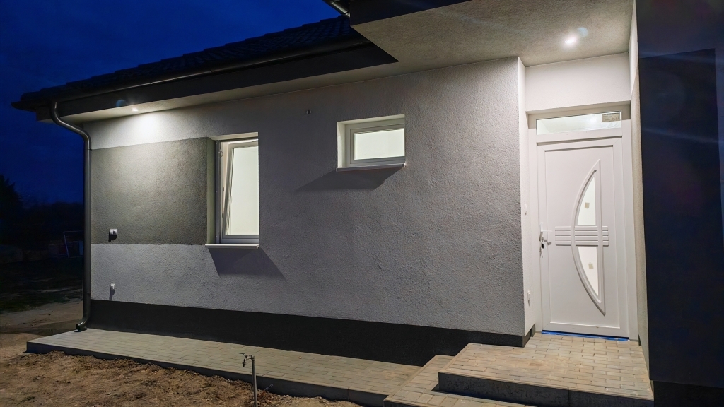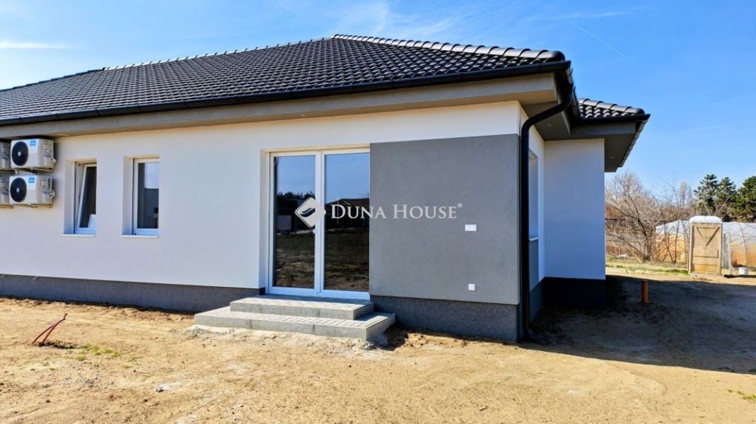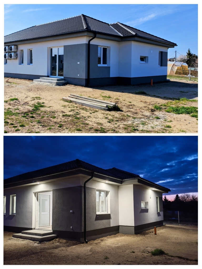 Kecskeméten 2026 tavaszán elkészült ikerház bal oldala, 93 nm-es, amerikai konyha nappali + 3 szobával, saját 375 nm-es telekkel eladó.