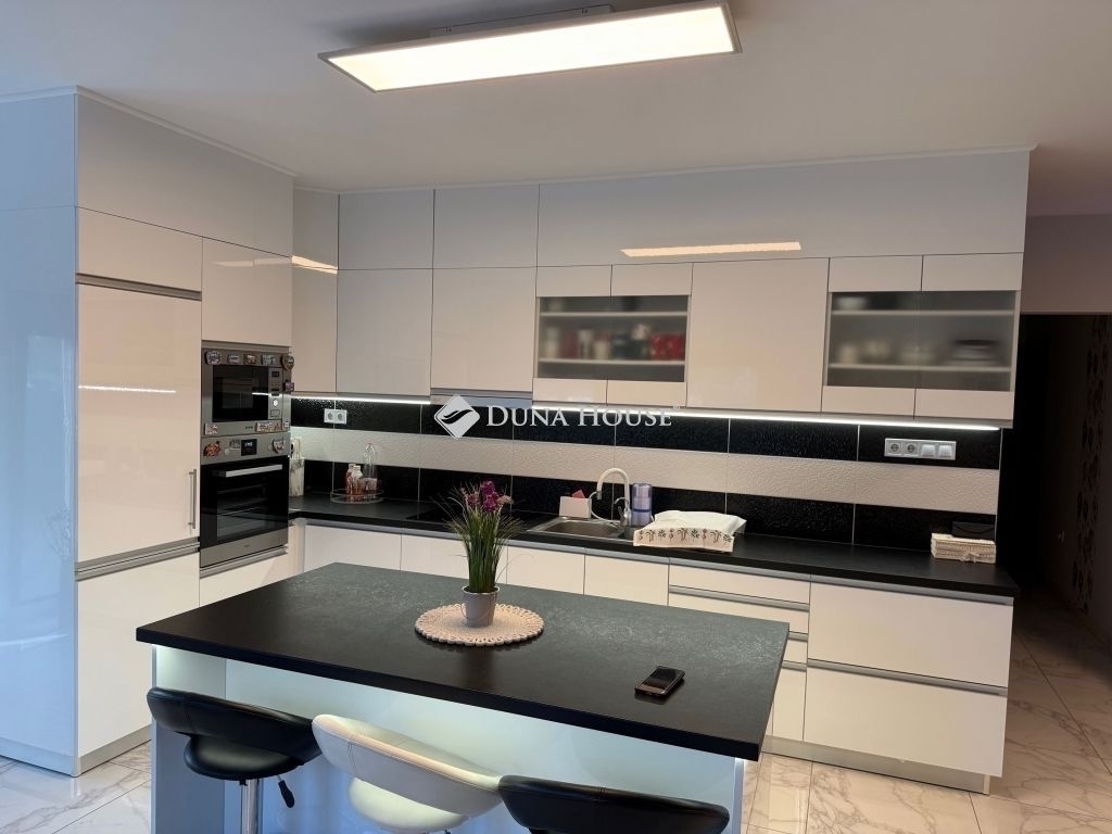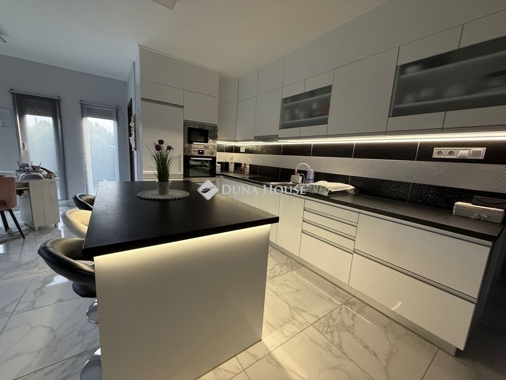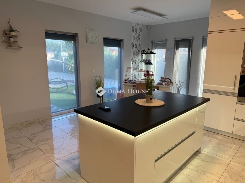 Kecskeméten a Hunyadiváros újabb részén eladóvá vált egy 2020-ban épült,102 nm-s, amerikai konyhás, 3 hálószobás, gyönyörű családi ház. Az ingatlan szinte új állapotú, nagyon jó izléssel kialakított, praktikus elrendezésű. Mindezek mellet korszerű és energiatakarékos is, az 5.6 kW-os napelem rendszernek a magas minőségű hang és hőszigetelt nyílászáróknak, és modern építési módnak köszönhetően. A családi ház udvarában helyett kapott egy dupla fedett autóbeálló, ami kíválóan mutat a hatalmas térkövezett, pálmákkal és gyönyörű növényekkel díszített udvarban. Az elhelyezkedése kiváló, csendes környék, gyors bejutás a belvárosba, iskola, óvoda, sportolási lehetőségek a közelben.Az ingatlan főbb jellemzői:- Telek mérete 684 nm- Lakóház hasznos alapterülete 95,75 nm- 2020-ban épült- Könnyűszerkezetes építési mód- Amerikai konyha és 3 hálószoba- Elektromos padlófűtés- Klíma- Elektromos redőny- Gyönyörű konyha, Gorenje és Whirlpool gépekkel felszerelve- 10 nm-s fedett terasz körben teraszponyvával ellátva- Dupla kocsibeálló tároló helyiséggel- Riasztó és kamerarendszer- Elektromos kapuAz ingatlan alkalmas az Otthon Start programban történő finanszírozásra!Megtekintés csak is előre egyeztetett időpontban, kérem keressen az elérhetőségeim egyikén!