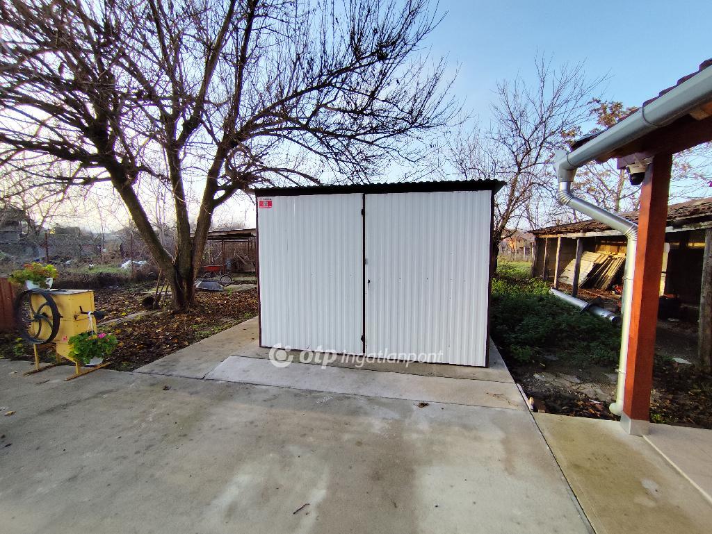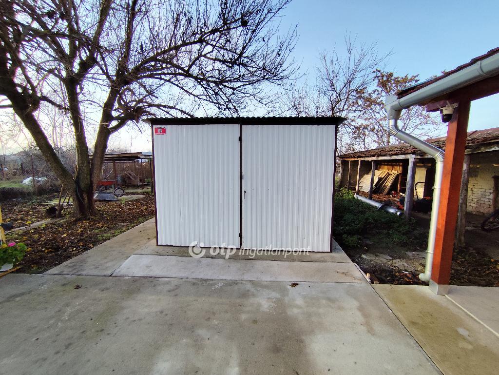 Az 1428 m2 telek teljes egészében füvesített, parkosított ahol található egy trapézlemez borítású könnyűszerkezetű garázs.