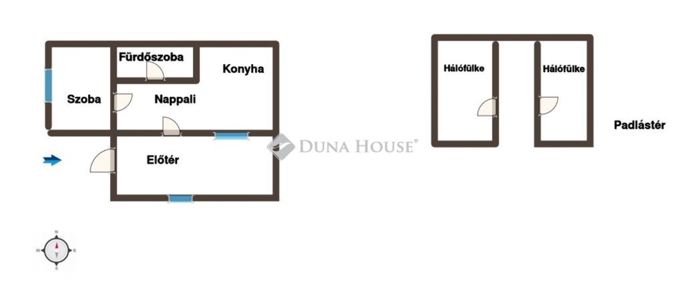 Az ingatlanban nappali, konyha, fürdőszoba az alsó szinten egy szoba található. A tetőtérben kialakításra került még két kicsi háló. Minden helyiség megfelelő burkolattal ellátott. A nappali, konyha, fürdő járólap, a többi helyiségben műanyag padló.