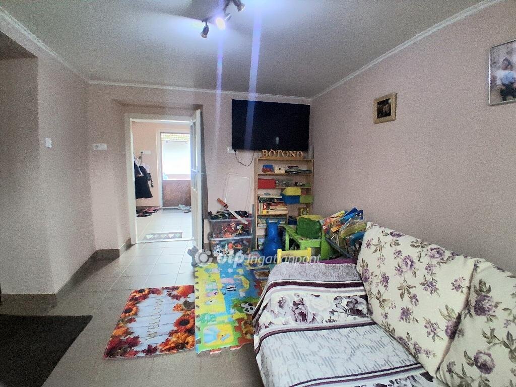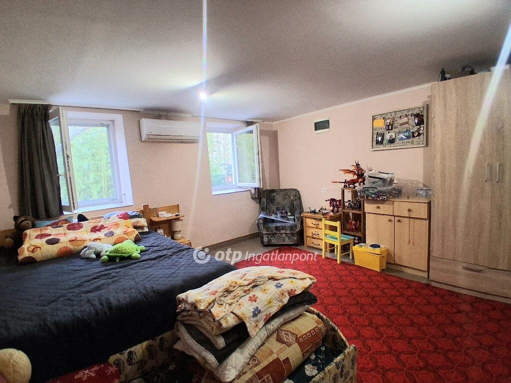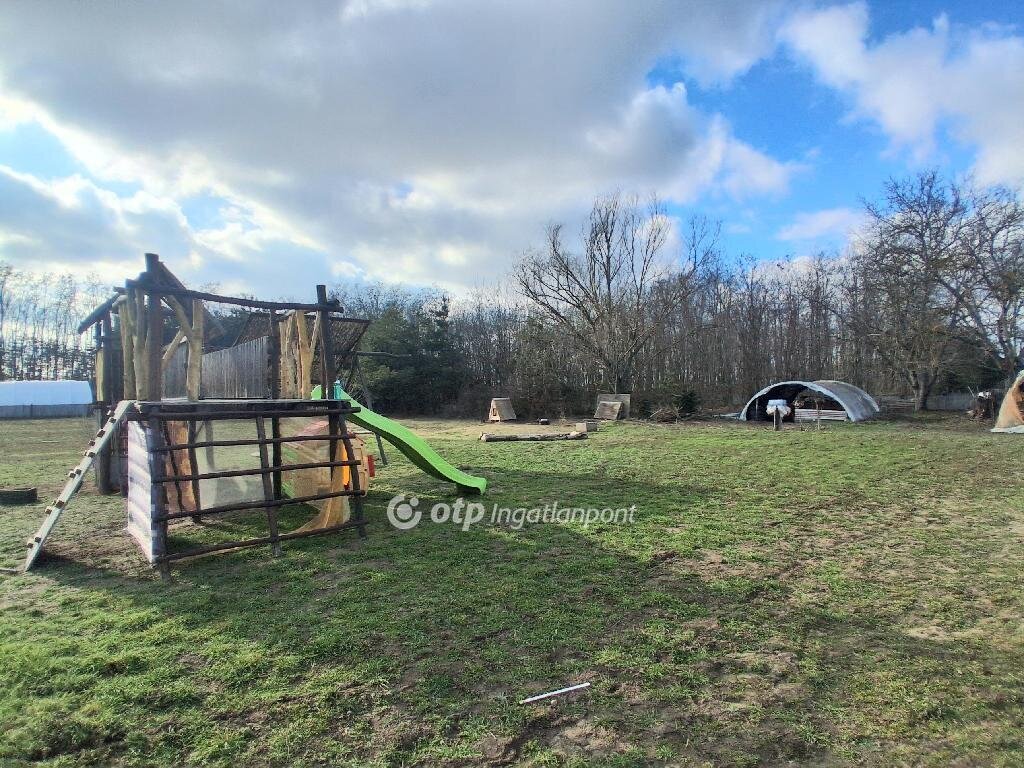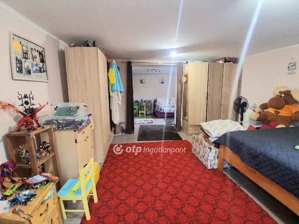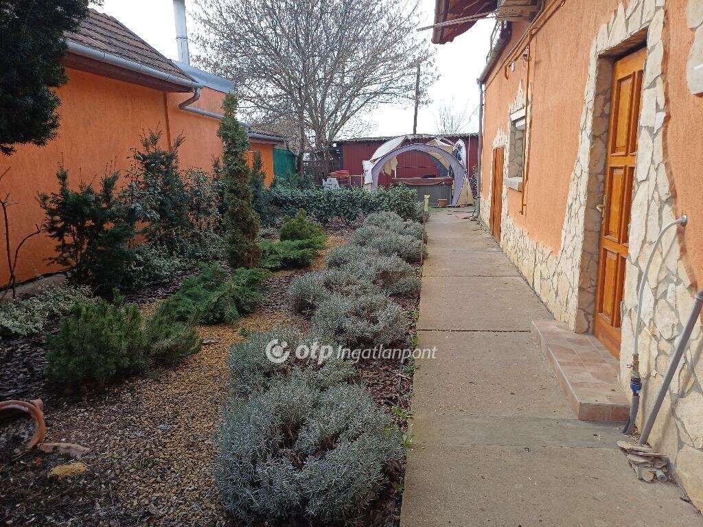 Bács-Kiskun Vármegye Kiskunfélegyháza Felsőgalambos városrészen családi ház eladó! Az ingatlan a Bugaci kereszteződés közelében helyezkedik el. A főépület hasznos alapterülete 57 m2, melyben két egész szoba, előszoba, konyha étkezővel, valamint fürdőszoba WC-vel került kialakításra. Az tulajdoni lapon Kivett / lakóház, udvar, gazdasági épület szerepel, az ingatlanhoz tartozó kivett terület 507 m2. Ezenkívül a tulajdoni lap alapján szántó 6761 m2, valamint fásított terület 797 m2, mindösszesen 8065 m2 terület tartozik az ingatlanhoz. A házat két kapubejárón keresztül is megközelíthetjük így a telek igény szerint szétválasztható és külön is értékesíthető. Az lakásban minden helyiség járólappal borított. Az otthon melegét 2 db. Midea típusú 3,5 KW-os hűtő-fűtő klíma biztosítja, másik alternatívaként lehetőség van kályhás fűtésre is. A területhez 4 db 33 méter mélységű fúrt kút is tartozik. Ebből kettő fúrt kút hidroforon keresztül működik. Az ingatlanban a vizet hidroforos pedroló szivattyúval áramszabályzóval ellátott kút biztositja. A városi vízhálózat kiépítése folyamatban van a környéken. Az ingatlan ipari árammal rendelkezik, a gázcsonk a telken belül közel az épülethez található. A főépülethez közvetlenül, külön bejárattal kapcsolódik egy 37 m2-es melléképület is, valamint egy 16 m2-es fedett terasz. A két épület egybe nyitható, ezzel a lakóingatlan alapterülete jelentősen megnövekedne. Az udvaron található egy 90 m2-es szendvicspanelből épült melléképület, mely legalább 4 méteres belmagassággal rendelkezik, lehetőség adva nagyobb gépek, traktorok tárolására. A melléképületben van még egy 30 m2-es hűtőhelyiség hűtőberendezéssel együtt, mely korábban , zöldségek hűtését biztosította. Az ipari hűtőberendezés ma is működőképes állapotban van. Az udvarban kialakításra került egy játszótér csúszdával, mászófallal, hintákkal, valamint egy kutyakenel. Az ingatlannal együtt két kisebb méretű fóliaváz is eladó. Az ingatlan aszfaltos út mellett található, óvoda, bolt, buszmegálló és autópálya feljáró a közelben. Az ingatlan Otthon Start hitelre alkalmas, kiváló lehetőség azok számára, akik csendes környezetben, mégis közel a városhoz szeretnének élni. Az ingatlan jogilag rendezett. Teljes körű és díjmentes Piaci Lakáshitel, Babaváró kölcsön és egyéb banki termékek ügyintézésével állunk rendelkezésére sorban állás nélkül! Az adásvételi szerződéshez megbízható ügyvédi hátteret biztosítunk. Megtekintésért kérem hívjon bizalommal! Eladó ingatlana van? Szívesen segítek az értékesítésben!