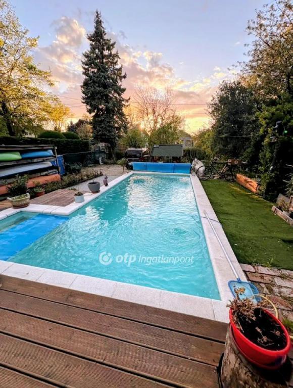 Az ingatlan része továbbá egy 7,5 × 4 méteres fűthető medence, egy impozáns vörösfenyő terasz, valamint rendezett, zöld, parkosított kert. Az ingatlan elektromos kapuval, riasztó rendszerrel ellátott.