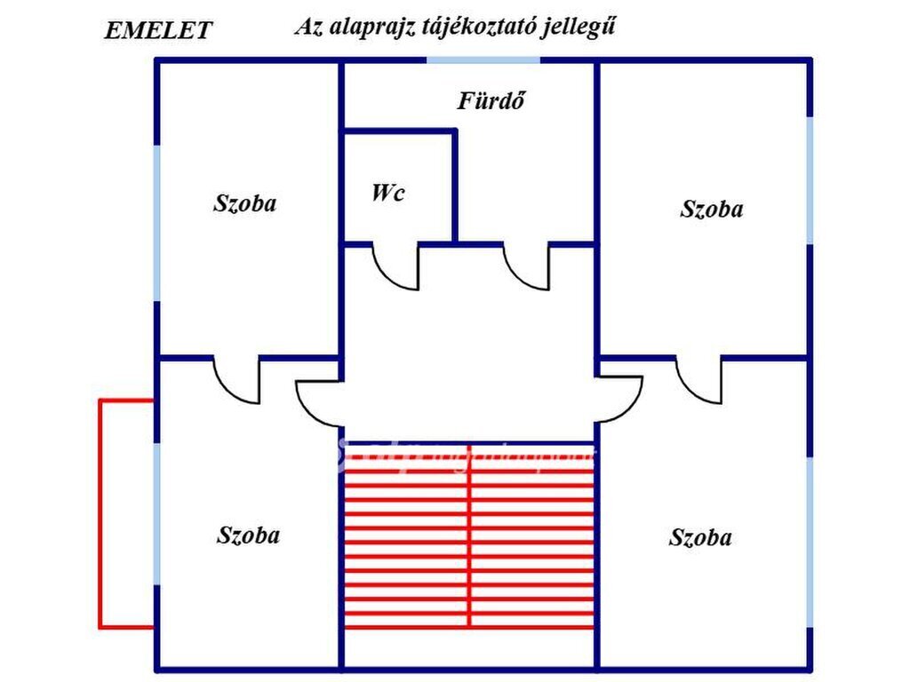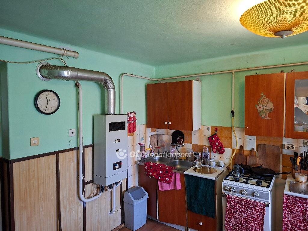 A 180 nm-es, beton alapra, tégla falazattal készült ingatlan a központhoz közel található. A földszinten két szoba, konyha, közlekedő, kamra, előszoba, közlekedő, fürdőszoba wc-vel helyiségek vannak. Az emeleti részen további 4 szoba, külön fürdőszoba és wc található. A szobák parkettásak, a többi helyiség járólappal burkolt. Az otthon melegét gázkazán biztosítja, radiátoros hőleadással.