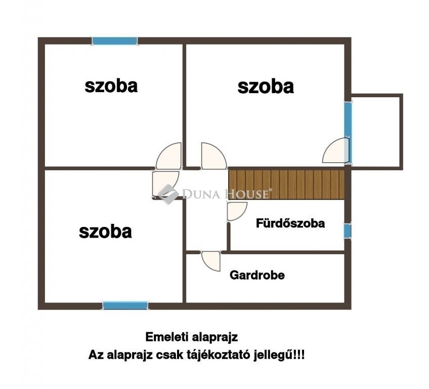 Az emeleten három tágas szoba, és egy zuhanyzós fürdőszoba található.