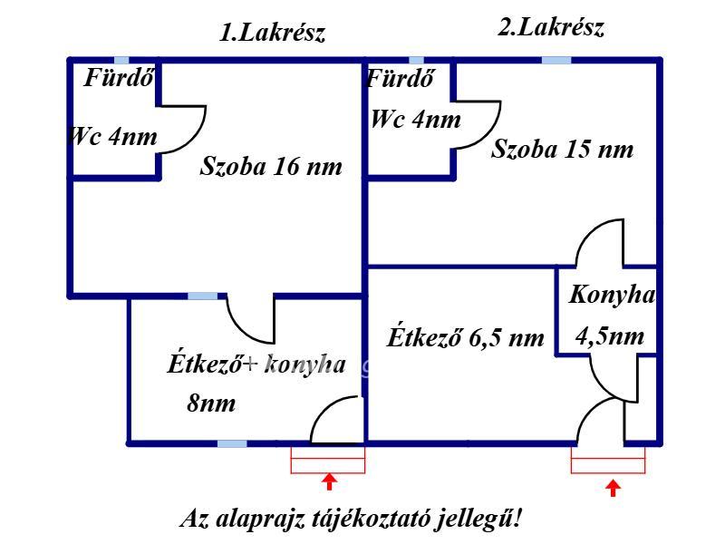 Külön bejáratú lakrészek: 2 db, egyenként 30 m2 , 1db 41 m2