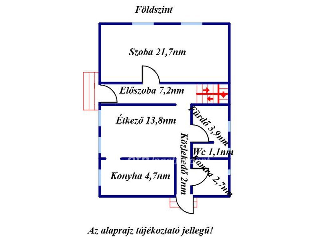 A földszinten található egy tágas szoba, előtér, étkező, konyha, kamra, közlekedő és egy fürdőszoba WC-vel, amit a jövőbeli tulaj alakíthat kedvére. Az emeletre kényelmes fa lépcsőn juthatunk fel, ahol egy szoba erkéllyel, két félszoba (amelyből az egyikhez 18 nm es félkész hátsó terasz tartozik), nappali és WC található. A fűtés jelenleg két hűtőfűtő klímával illetve kandallóval megoldott, a meleg vizet villanybojler biztosítja, a szennyvízrendszer kiépített. A gázfűtési rendszer felújításra szorul.