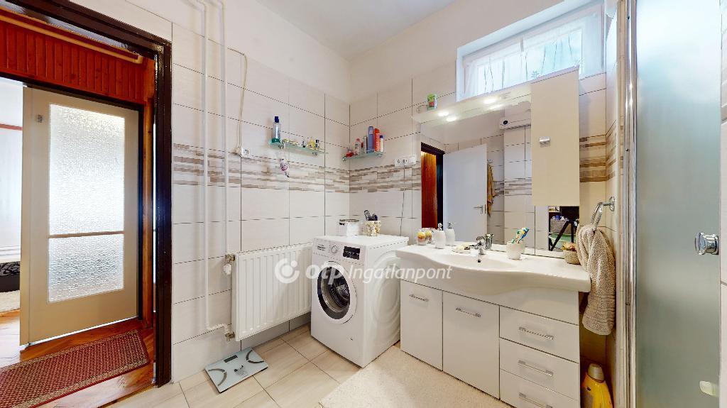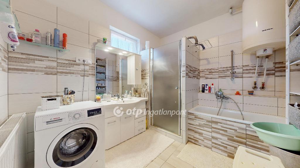 A központi fűtést kondenzációs kombi gázkazán végzi, radiátor hőleadókkal. A meleg víz előállításáért egy 120 literes villanybojler felel.