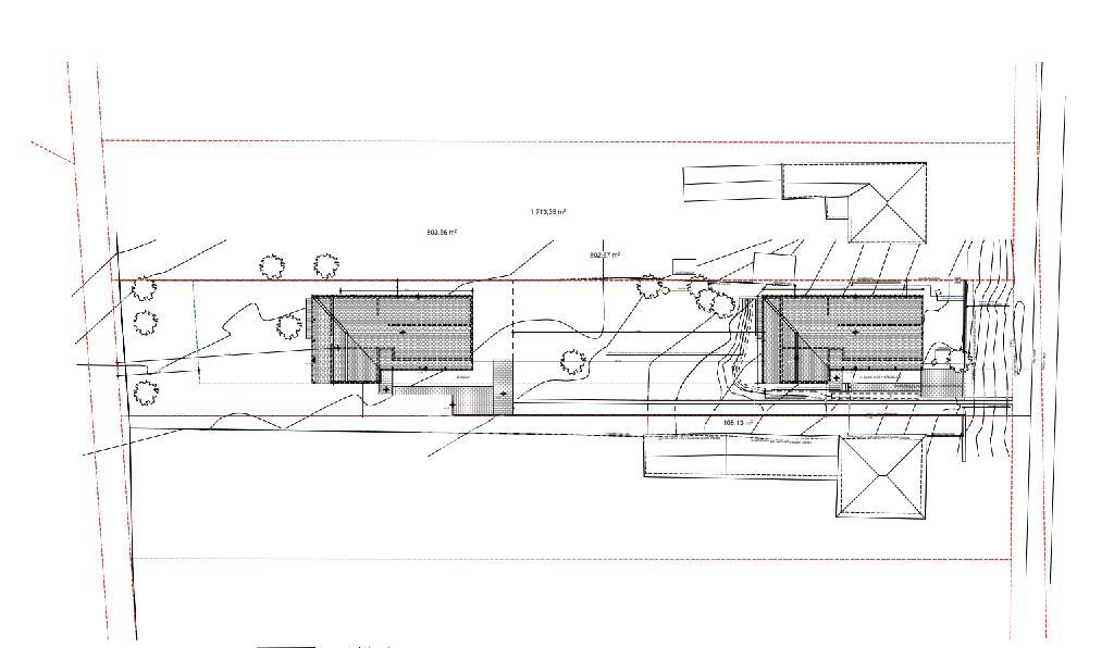 Az ingatlanok 1806 nm-es telken épülnek, a hátsó házhoz szolgalmi út tartozik, így a házakhoz tartozó telekterület 800 nm-es lesz.
