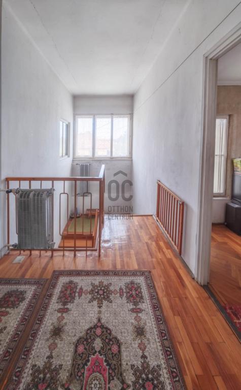 - A felső szint felosztása: lépcsőház, előtér, 3 szoba, fürdőszoba, wc, egyéb tároló helyiség (padlásfeljáró), 2 erkély.