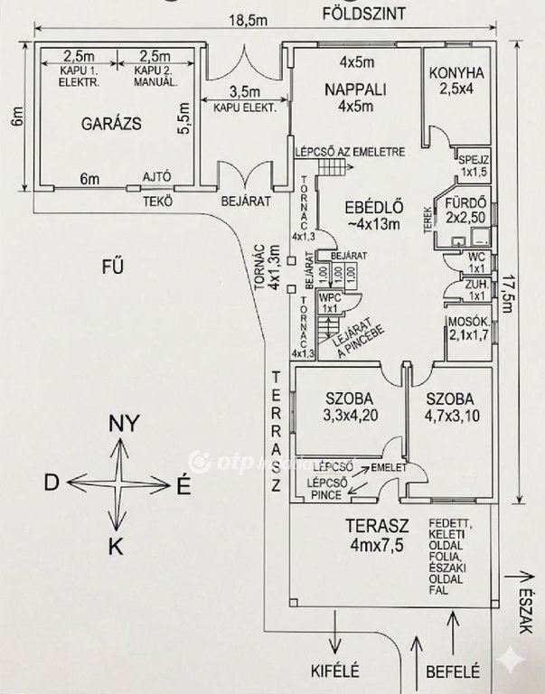 Szigetelés: északi és nyugati oldalon 10 cm szigetelés