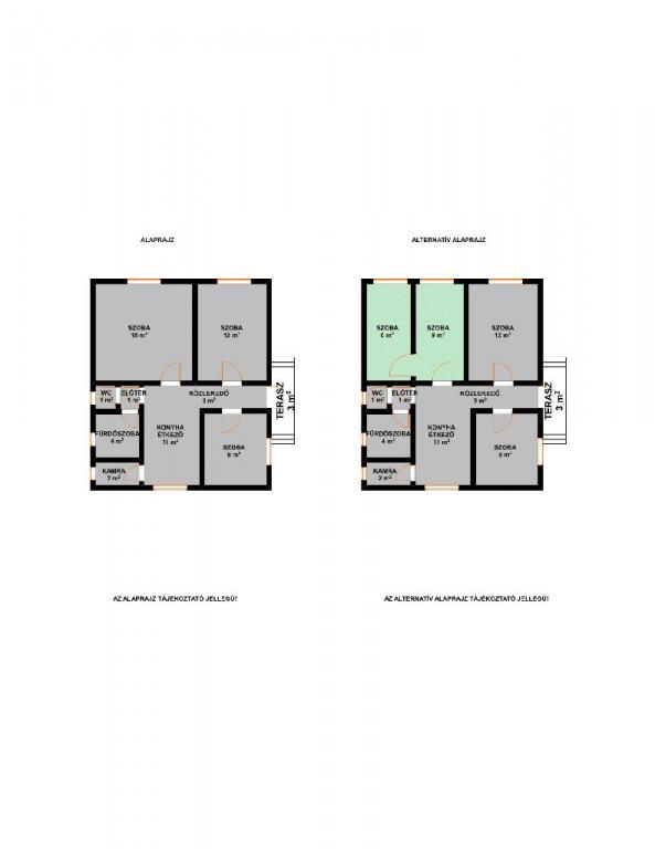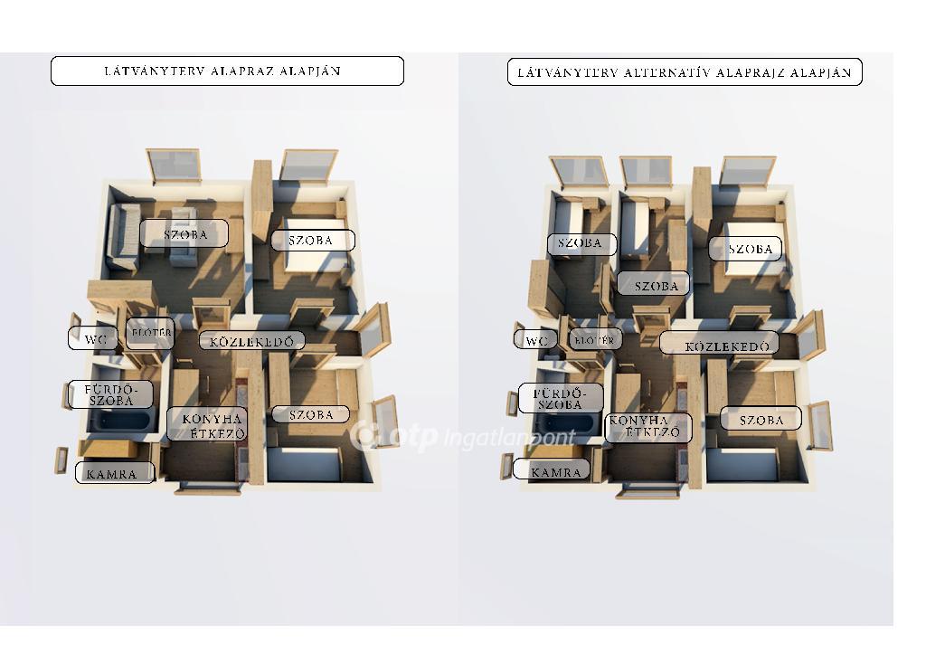 - 3 szoba, közlekedő, konyha + étkező, kamra, fürdőszoba, WC