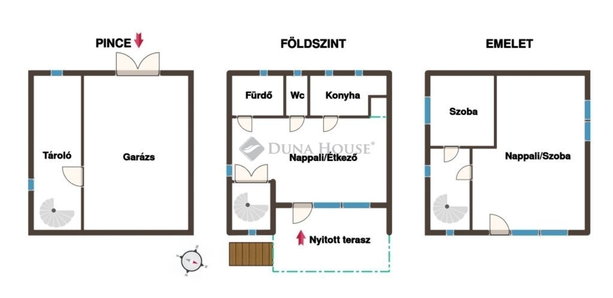 - Földszinten nappali/étkező, konyha, fürdő, wc és terasz,