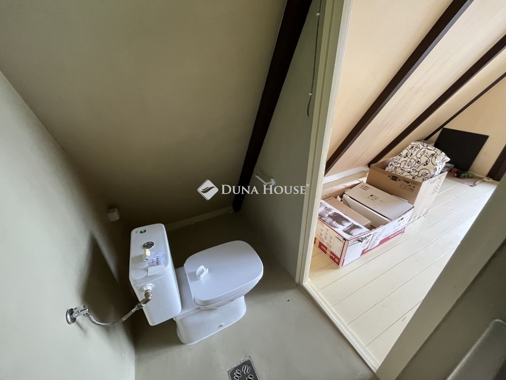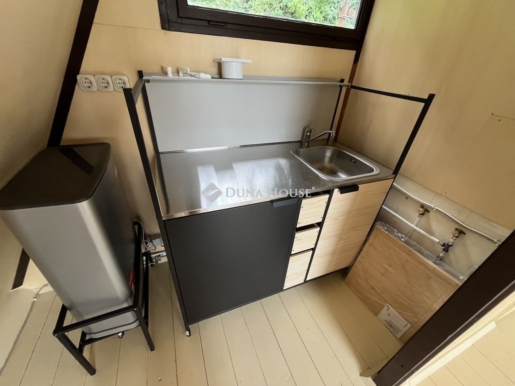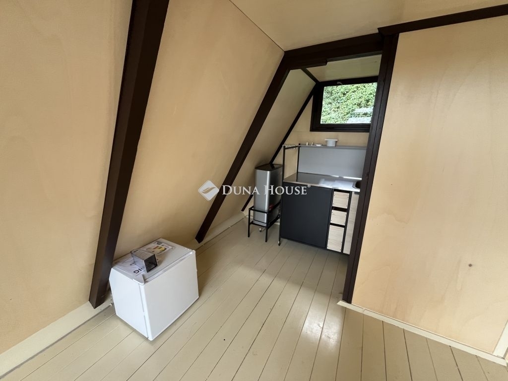 Eladó hangulatos nyaraló Kulcson. Csend, természet, kikapcsolódás. Kulcson, rendezett környezetben, 773 m²-es telken eladó egy 25 m²-es, könnyűszerkezetes nyaraló, amely ideális választás pihenésre, hétvégi kikapcsolódásra vagy akár állandó lakhatásra is. Az ingatlan elrendezése:Az alsó szinten egy praktikus tárolóhelyiség található, ami tökéletes kerti eszközök vagy sportfelszerelések számára.Külső lépcsőn keresztül jutunk fel a lakótérbe, ahol egy kisebb nappali-konyha és egy mosdó kapott helyet.A galériás megoldású alvórész otthonos, kényelmes hangulatot áraszt, ideális pihenésre egy hosszú nap után. A tágas telek parkosított, gondozott, és bőven hagy lehetőséget további fejlesztésre akár egy terasz, medence vagy kerti pihenő kialakítására is.