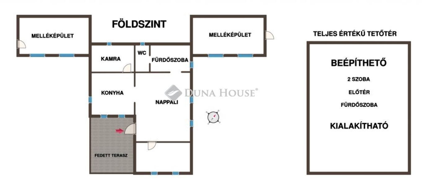 Tetőtér: vasbeton födém, válaszfalak állnak – kialakítható előtér, 2 szoba és fürdőszoba WC-vel