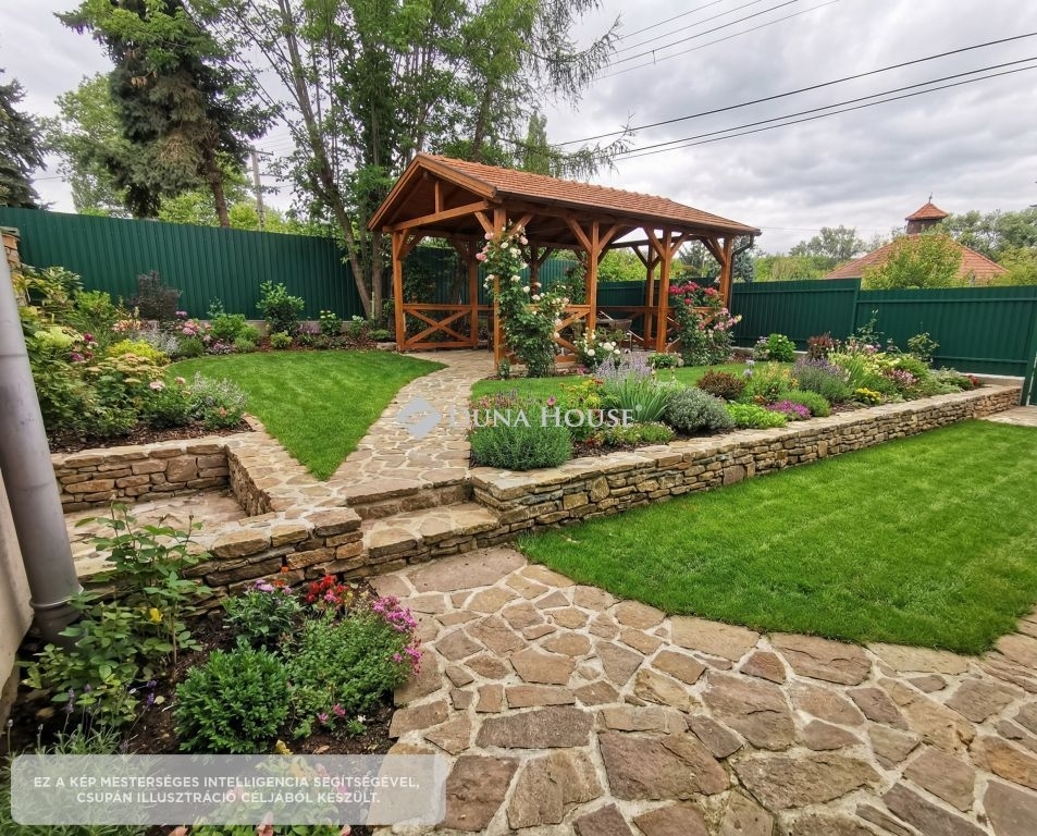 Kis telek, melyet könnyen hangulatos kertté lehet varázsolni, melyet az egyik látványkép is illusztrál.