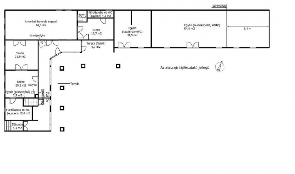 A burkolatok laminált parketta és kerámia, a falak festettek. A ház egy része alatt pince található. Az ingatlan tehermentes, azonnal költözhető, a kert gondozott, kútvízzel öntözhető, több termő gyümölcsfával. A telken két nagy gazdasági épület és fatároló is rendelkezésre áll. Igény esetén egy több mint két hektáros terület is megvásárolható hozzá.