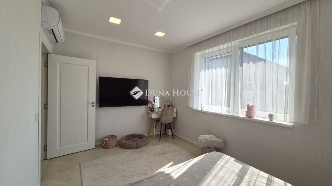 A családi ház 28 km távolra van Kecskeméttől, ezért idális választás lehet olyanoknak, akik egy korszerű, magas műszaki tartalmú, otthont keresnek.