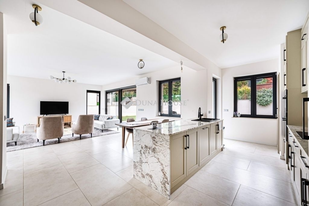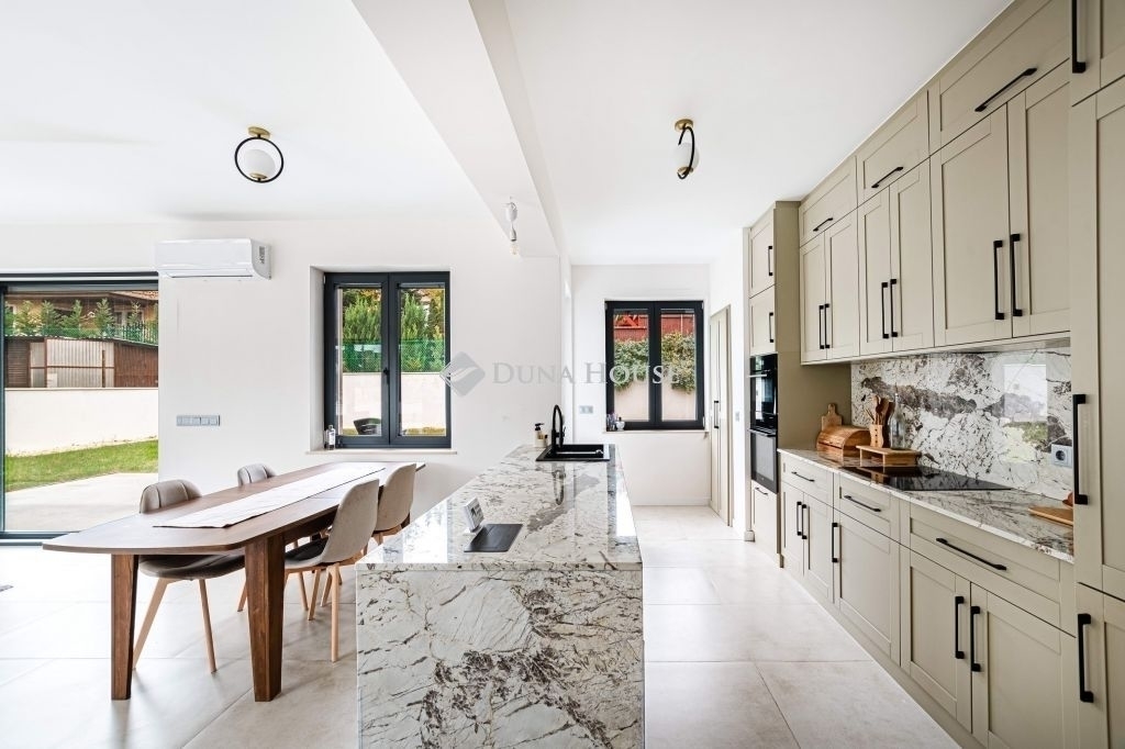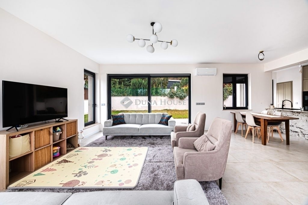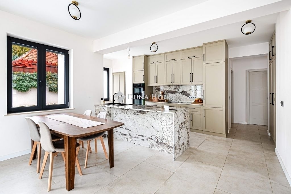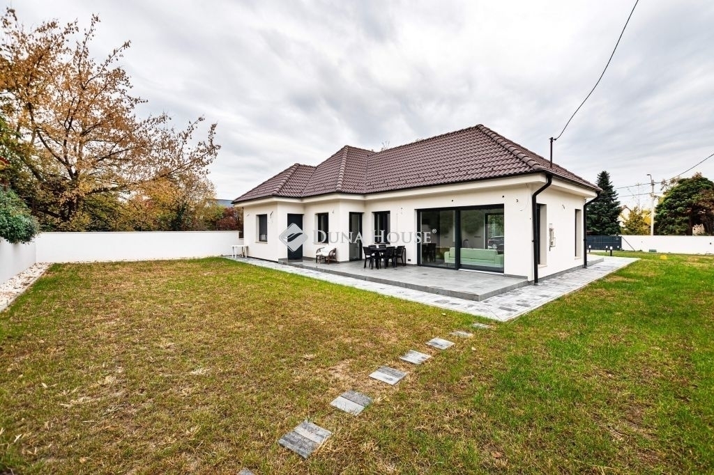 Kivételes lehetőség egy minőségi kivitelezésű, modern, nettó 120 m²-es otthon, amely 1059 m²-es, rendezett telken fekszik.
