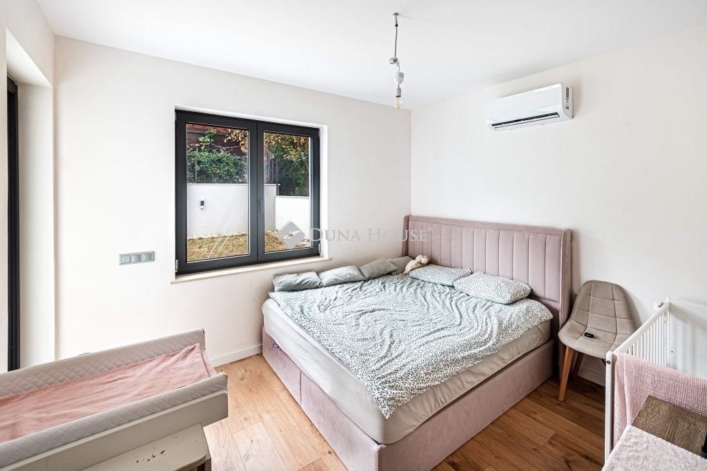 - Bosch kondenzációs kombi kazánról üzemeltetett padlófűtés, a nappaliban és a szülői hálóban klíma, a másik két szobában pedig kiépített klímarendszer