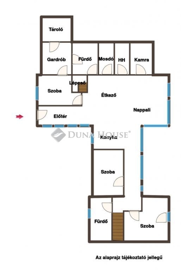 - Egyszintes, kiváló elrendezésű: tágas nappali, 3 világos hálószoba, 2 teljes értékű fürdőszoba és külön vendégmosdó