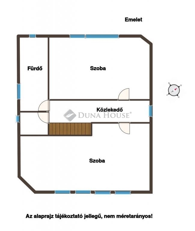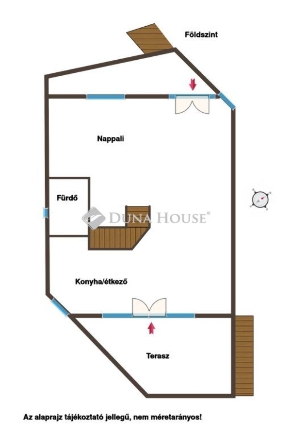 Az alsó szinten nappali, konyha, étkező és fürdőszoba kapott helyet, az emeleten 2 szoba es fürdőszoba található.