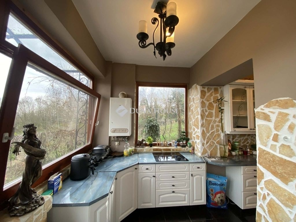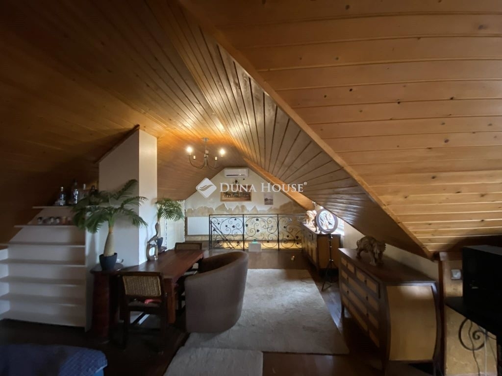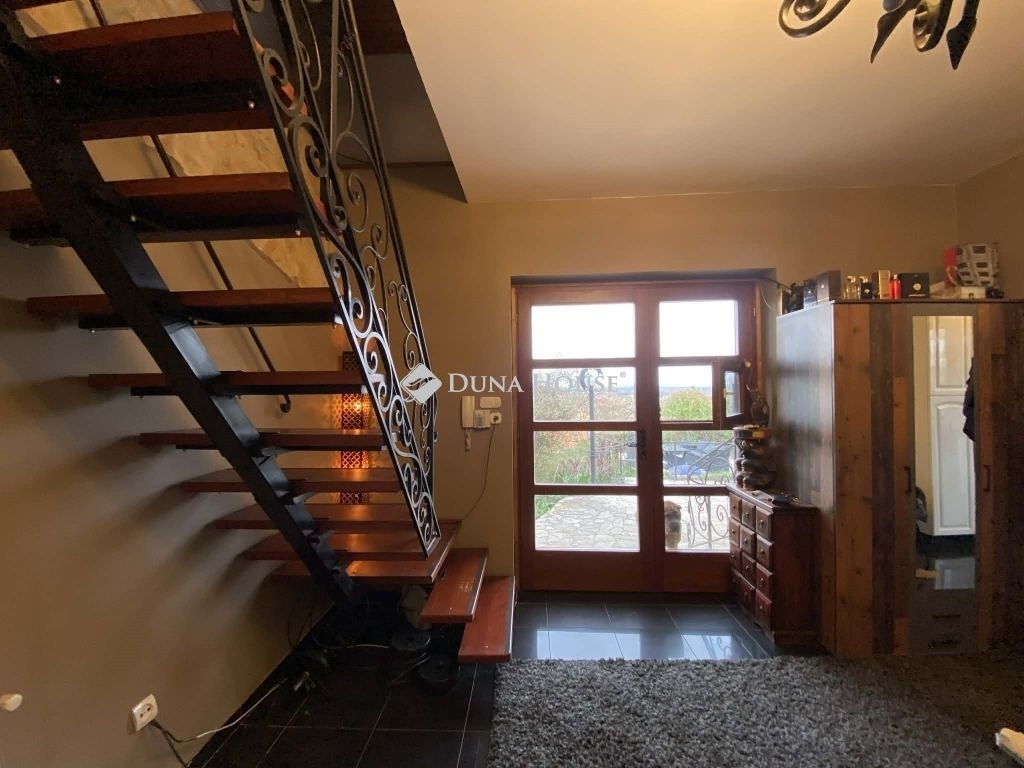 Panorámás családi ház eladó Leányfalun, bővítési lehetőséggel, tágas telken!Leányfalu egyik legkedveltebb, csendes hegyoldali részén kínálunk megvételre egy kiváló adottságokkal rendelkező, két szintes családi házat. Az ingatlan egy 912 m²-es, tágas telken, a telek legmagasabb pontján helyezkedik el, ennek köszönhetően minden szintjéről lenyűgöző, örök panoráma tárul elénk.A természet közelsége mellett a lokáció is kiváló:a Duna-part mindössze 5 perc sétára, míg a leányfalusi strand kb. 10 perc gyalogosan, így a nyári kikapcsolódás könnyedén elérhető.Az ingatlan főbb jellemzői: Kétszintes kialakítás: a földszinten konyha, fürdőszoba és nappali található, a tetőtérben egy tágas, jól alakítható szoba kapott helyet. Bővíthető: az ingatlan tovább bővíthető, így akár több hálószoba vagy nagyobb élettér is kialakítható. Sokoldalú fűtés: gázcirkó, kandalló és klímaberendezés biztosítja az egész éves komfortot. Parkolás a telken belül, több gépjármű számára is megoldott. Szauna kialakítása előkészítve. Kerti kút található a telken, amely ideális locsoláshoz és kertfenntartáshoz. Nyugodt, privát környezet: a szomszédos telek beépítetlen, így a zavartalan pihenés hosszú távon is biztosított.Az ingatlan ideális választás mindazok számára, akik természetközeli, mégis könnyen megközelíthető otthont keresnek, panorámával, tágas telekkel és további fejlesztési lehetőségekkel.Ne maradjon le erről a ritka lehetőségről!