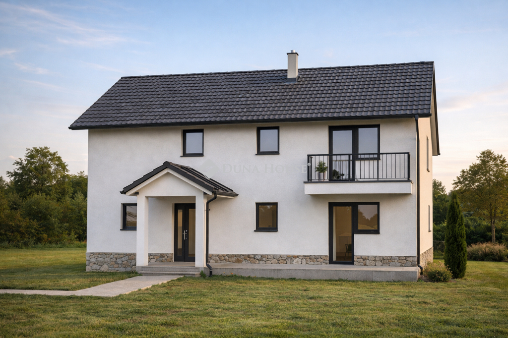 ÚJ ÉPÍTÉSŰ, PANORÁMÁS CSALÁDI HÁZ ELADÓ SZENTENDRE és LEÁNYFALU HATÁRÁNHa egy modern, energiatakarékos, újépítésű otthont keresel zöld környezetben, mégis kiváló elérhetőséggel, most megtaláltad.Szentendre és Leányfalu határán kínáljuk ezt a bruttó 124 nm-es, önálló, kétszintes családi házat, amely 554 nm-es telken, gyönyörű panorámával, nagy teraszokkal és gépkocsi beállóval épül.Elrendezés élhető terek, praktikus kialakításFöldszint: tágas, világos nappalikonyhaétkező közvetlen kapcsolat a közel 40 nm-es nagy teraszhoz külön szoba (dolgozónak vagy vendégszobának is ideális) fürdőszoba előtér kamra külön mosdóEmelet: 3 kényelmes méretű hálószoba fürdőszoba közlekedőA nappali + 4 hálós kialakítás ideális nagyobb család számára is.Modern műszaki tartalom energiatakarékos megoldásokAz ingatlan magas színvonalú műszaki tartalommal épül: 30 cm klíma tégla falazat 10 cm grafitos hőszigetelés 3 rétegű műanyag nyílászárók korszerű hőszivattyús padlófűtés klíma előkészítés riasztó előkészítés elektromos kapu előkészítés nagy, élhető teraszok viacolor burkolatú gépkocsi-beállóAz ingatlan újépítésű családi ház, amely megfelel a CSOK és CSOK Plusz támogatás feltételeinek, így kiváló lehetőség családalapítóknak és bővülő családoknak egyaránt.Várható birtokbaadás: 2026. IV. negyedévMiért érdemes Leányfalut választani?Leányfalu a Dunakanyar egyik legkedveltebb települése: természetközeli, zöld, nyugodt környezet tiszta levegő, panorámás domboldalak családbarát hangulat közel Szentendréhez és Budapesthez kiváló kirándulási, sportolási lehetőségek Duna-part, strand, termálfürdőAmennyiben felkeltette érdeklődését az ingatlan, kérem keressen.