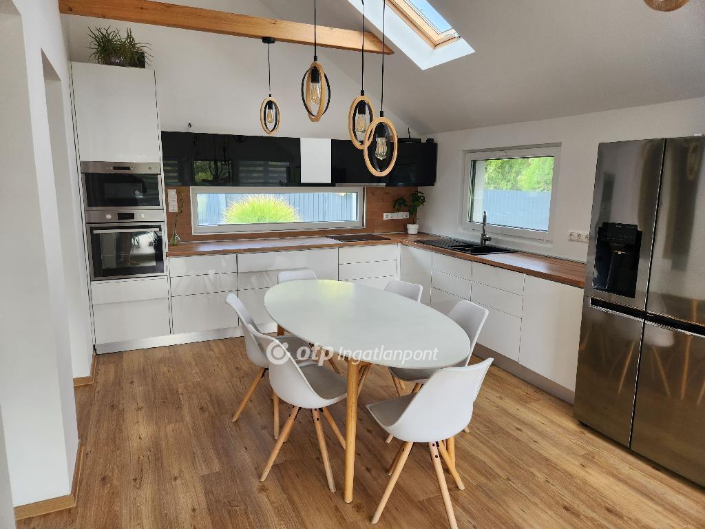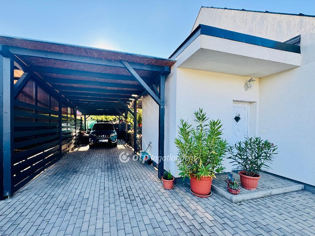 Lepsény rendezett, nyugodt utcájában eladó egy 2019-ben épült, modern szemlélettel tervezett családi ház. Az ingatlan külön helyrajzi számon szerepel, egy négylakásos, osztatlan közös területen belül, a házak között nincsenek közös falak, így a privát tér és a csend garantált. A külső szerkezet időtálló: Porotherm tégla falazat, Tondach tetőcserép, négyrétegű kamrás, hőszigetelt nyílászárók és harminc centiméteres homlokzati szigetelés gondoskodnak a tartós minőségről és a kellemes hőérzetről. Belül padlófűtés adja az alapkomfortot minden helyiségben, a hűtés-fűtés finomhangolását Gree klíma segíti.