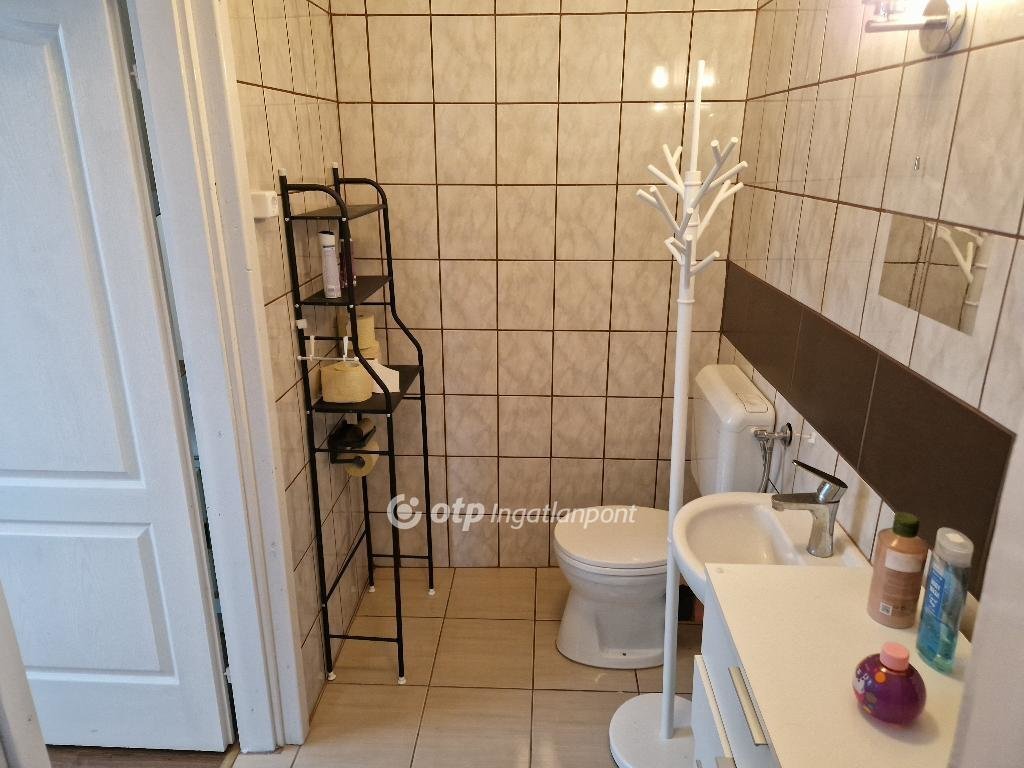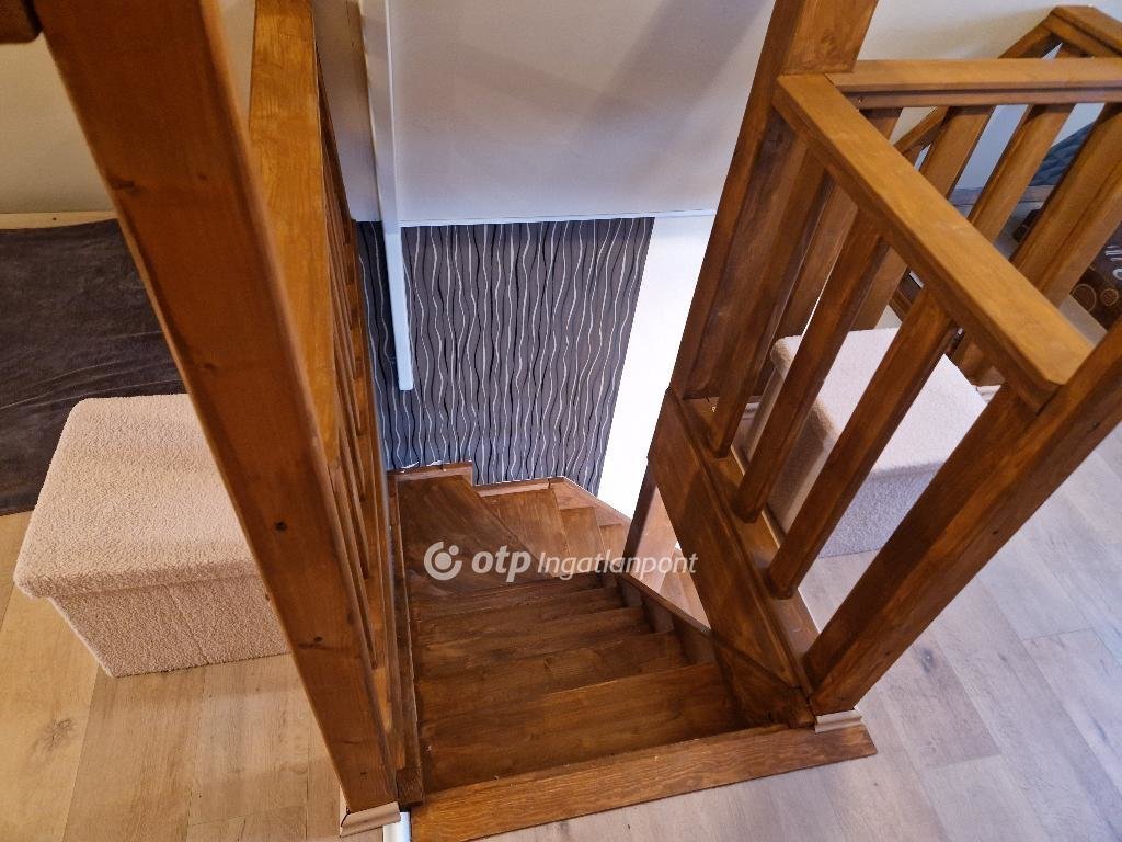 A felső szint különlegessége, hogy külső lépcsőn közelíthető meg, így akár teljesen külön bejáratú lakrészként is funkcionálhat. Az ingatlanban összesen két fürdőszoba került kialakításra, ami tovább növeli a komfortérzetet és a praktikusságot.